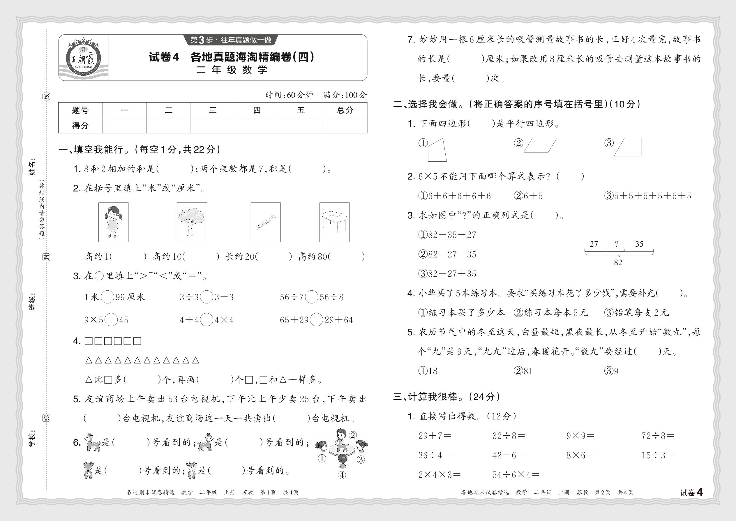 2023秋上册二年级数学苏教版 各地真题海淘精编卷(四)JX