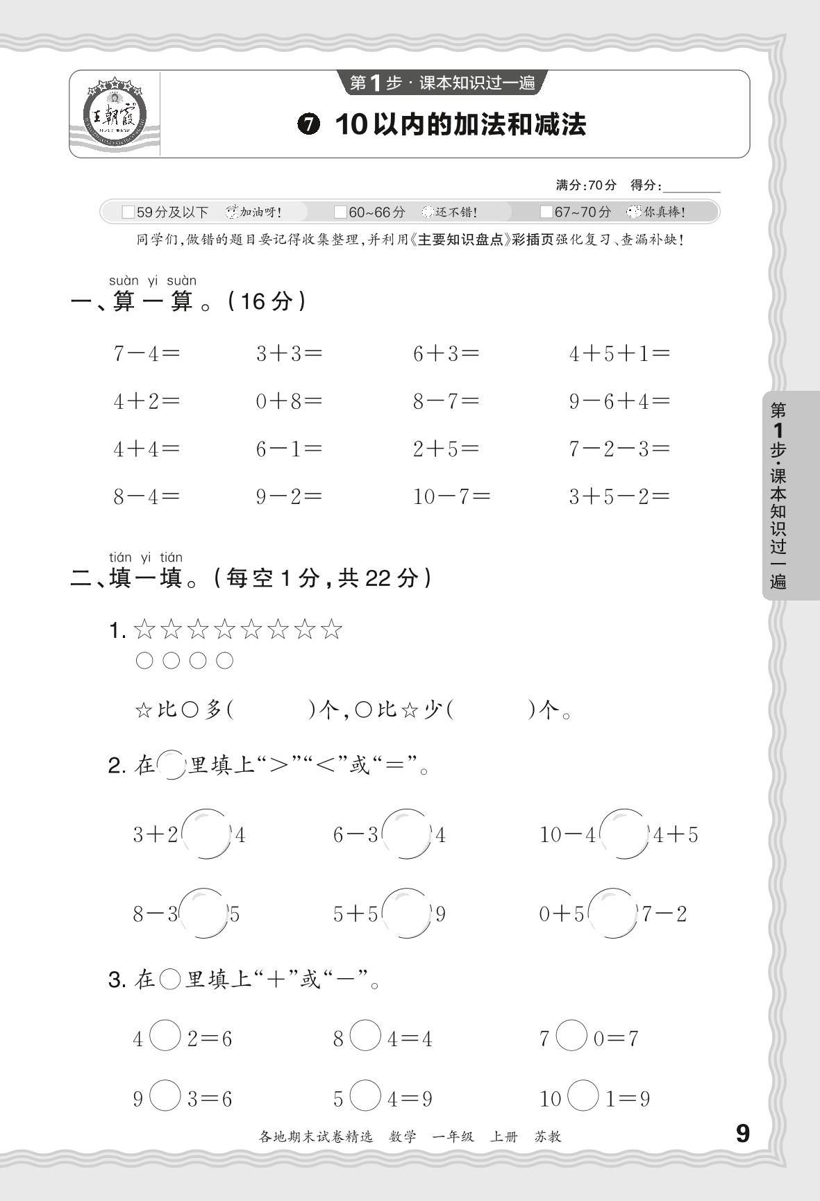 2023秋上册一年级数学苏教版 期末过课本JX版·10以内的加法和减法【7】