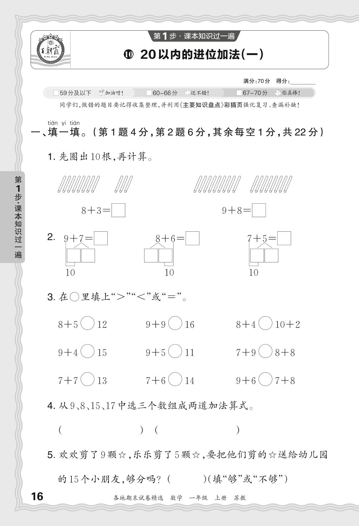 2023秋上册一年级数学苏教版 期末过课本JX版·20以内的进位加法(一)【10】