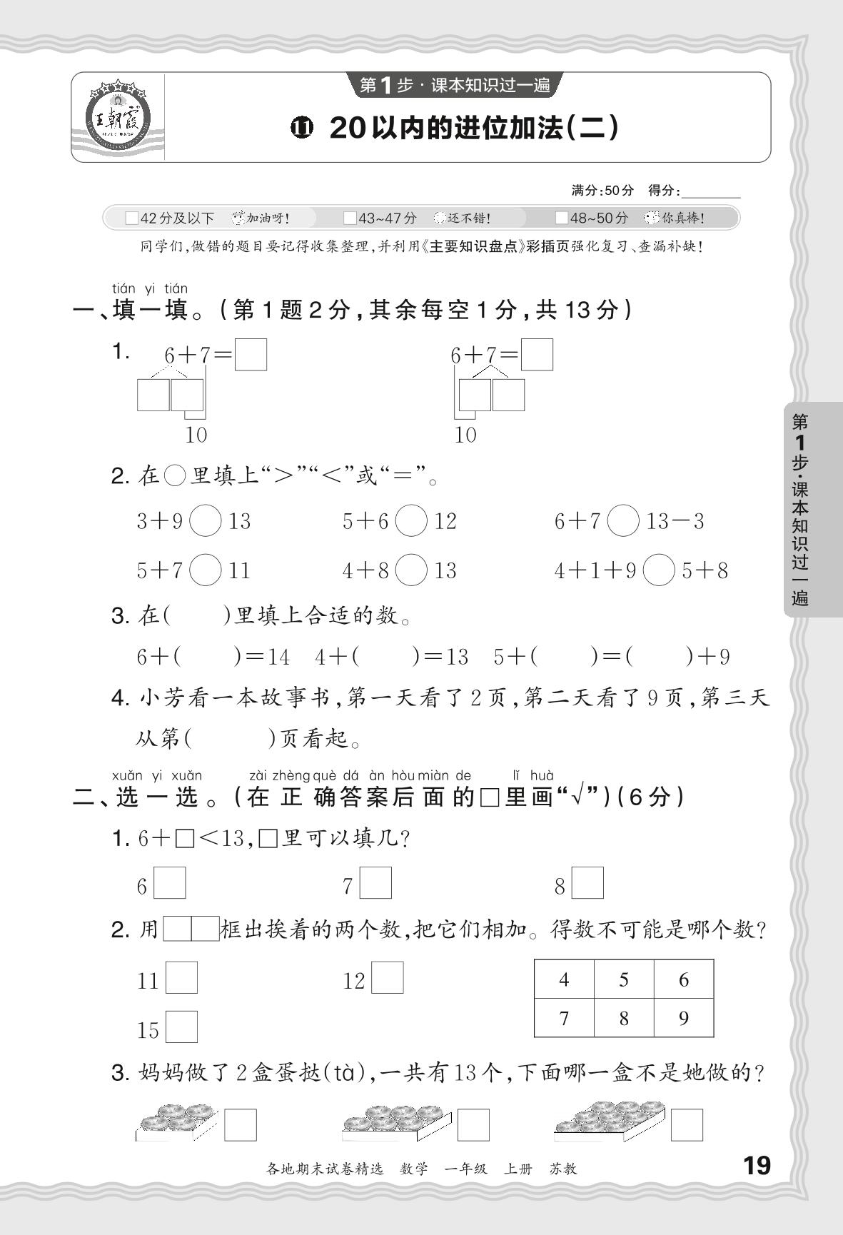 2023秋上册一年级数学苏教版 期末过课本JX版·20以内的进位加法(二)【11】