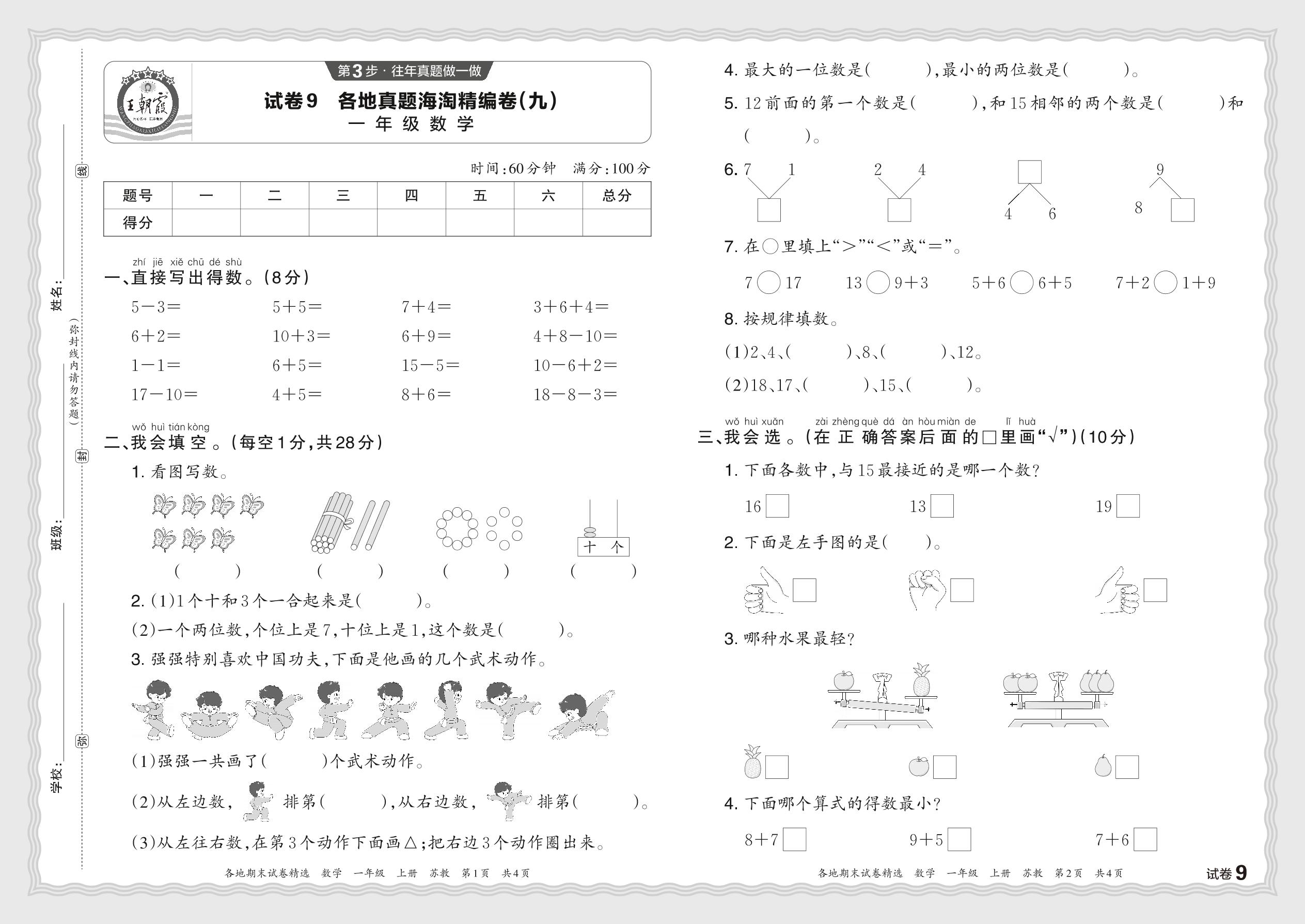 2023秋上册一年级数学苏教版 各地真题海淘精编卷(九)JX