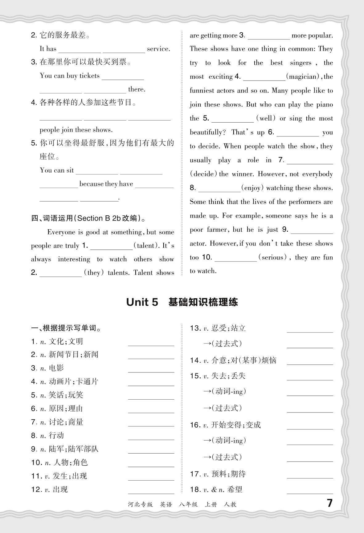 2023秋上册八年级英语人教版 期末过课本·Unit 5 基础知识梳理练_R231124112128333