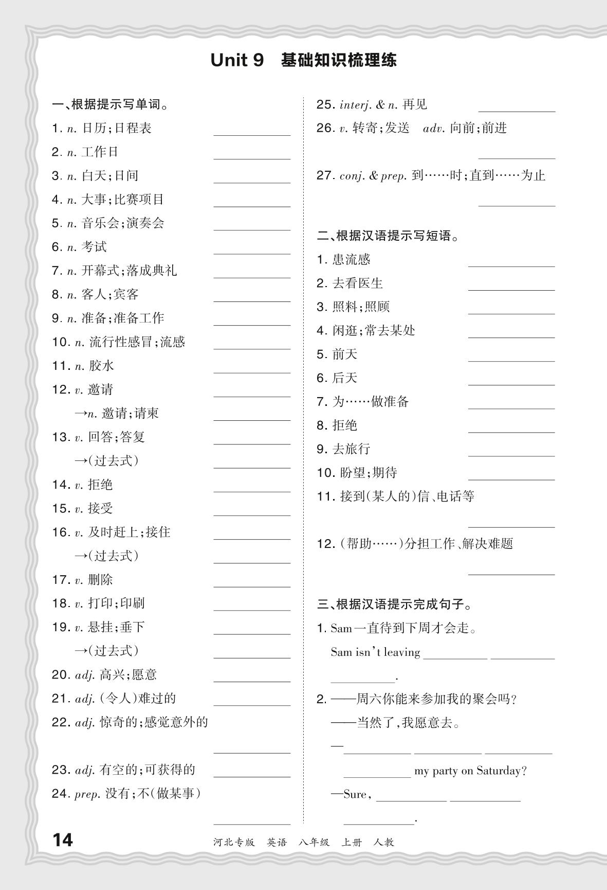 2023秋上册八年级英语人教版 期末过课本·Unit 9 基础知识梳理练_R231124112129130