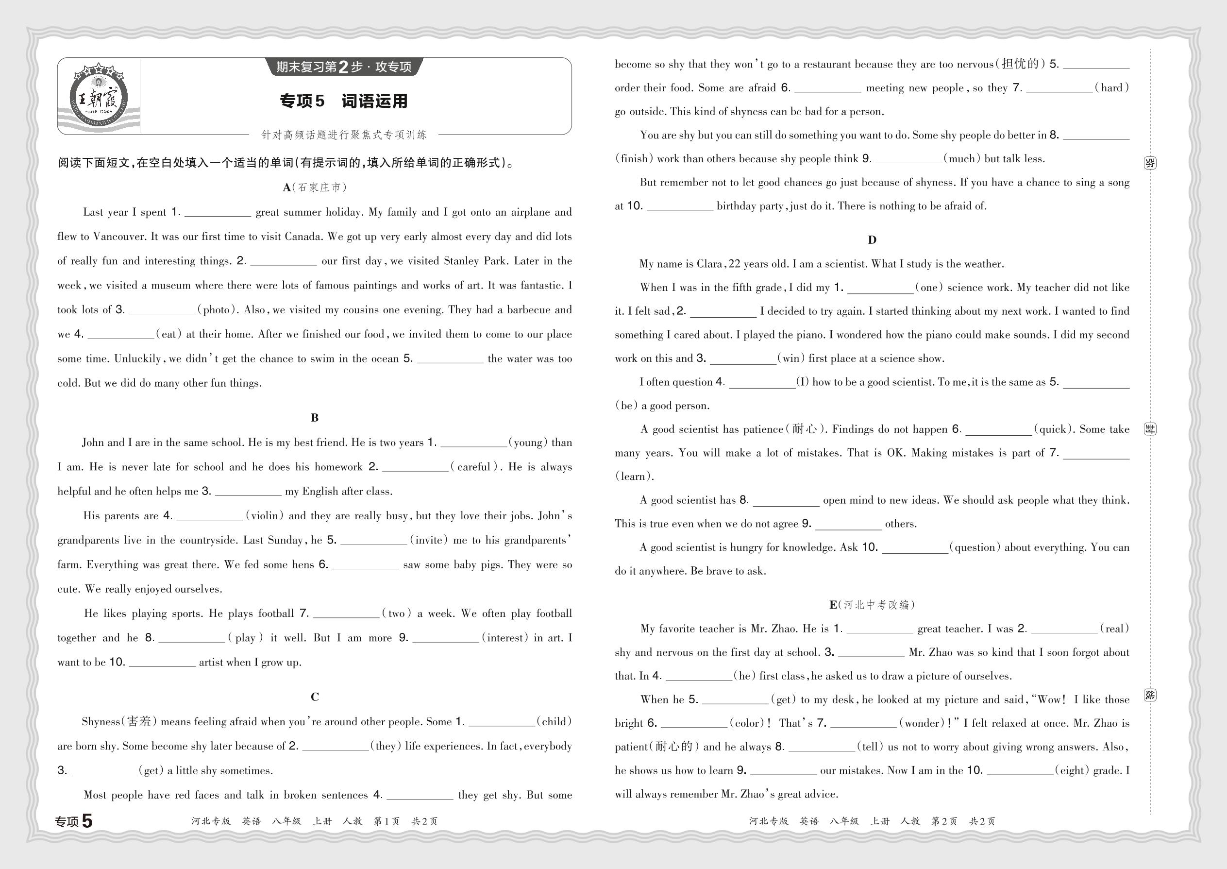 2023秋上册八年级英语人教版 期末专项卷·词语运用【5】