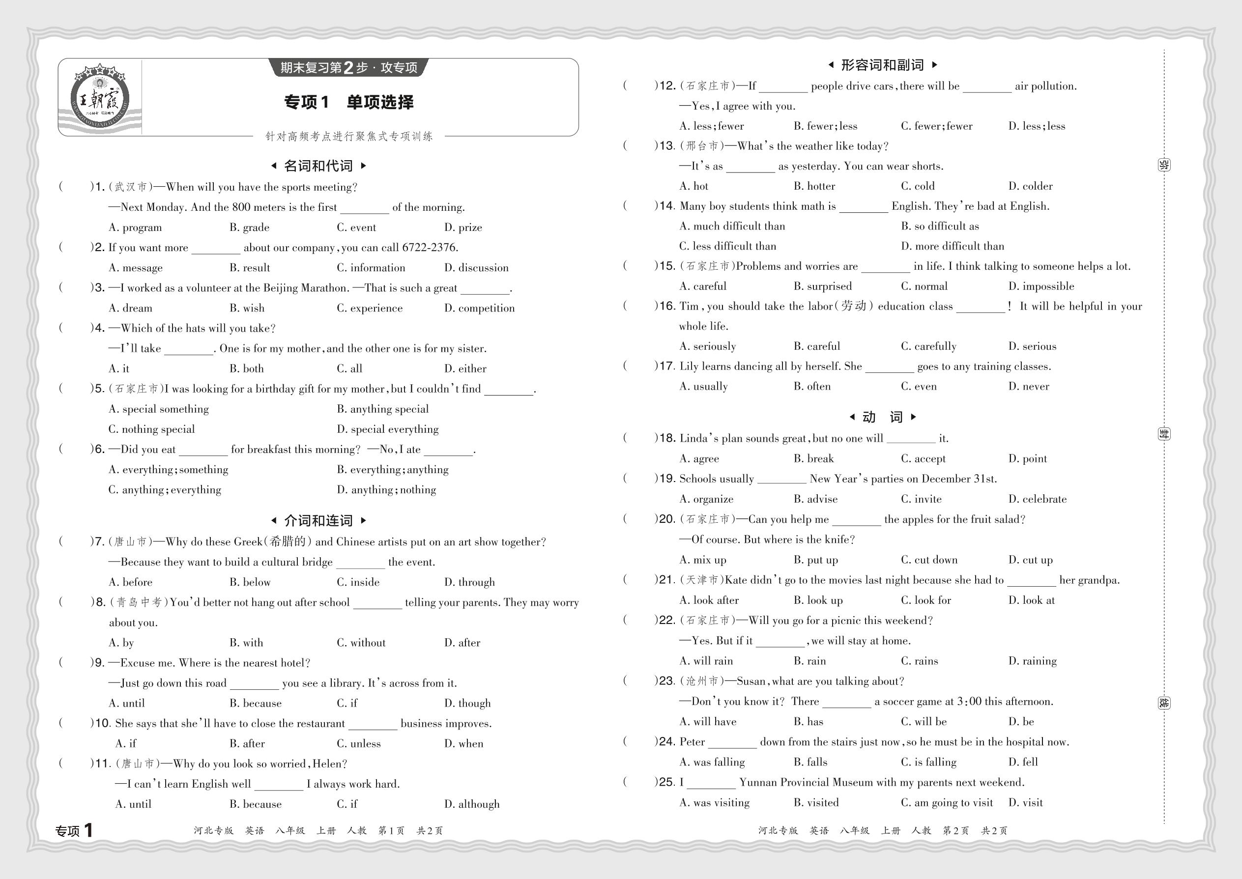 2023秋上册八年级英语人教版 期末专项卷·单项选择【1】