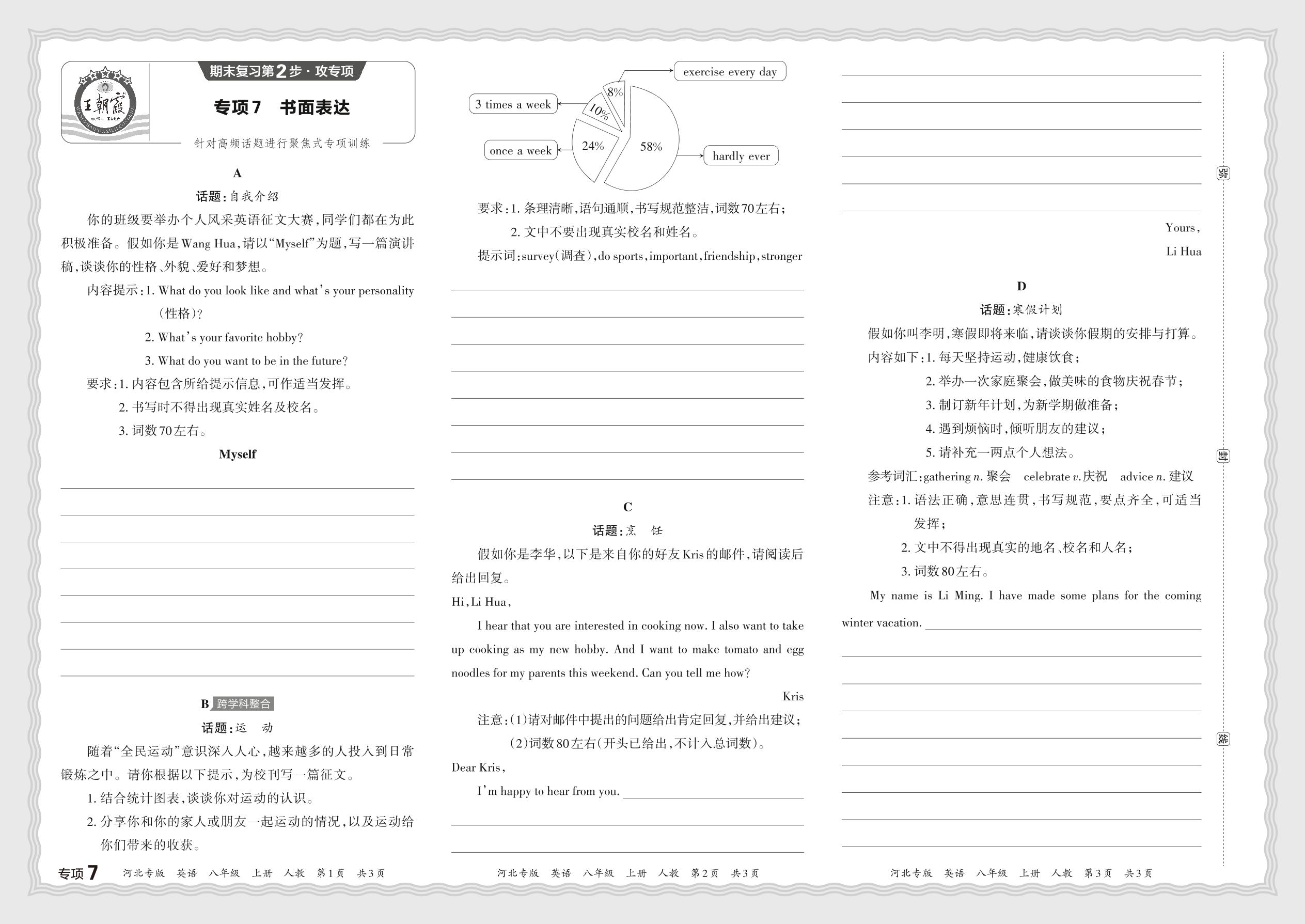 2023秋上册八年级英语人教版 期末专项卷·书面表达【7】