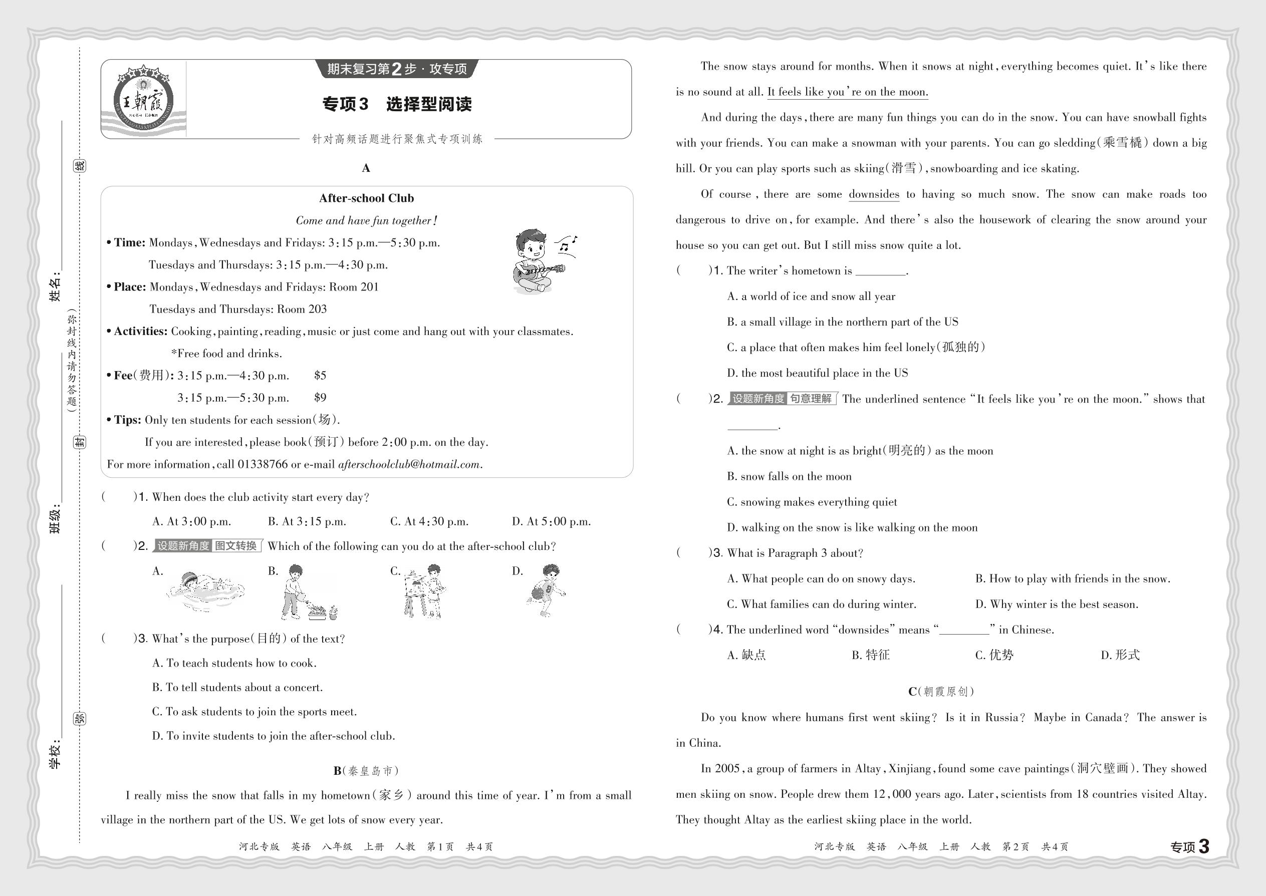 2023秋上册八年级英语人教版 期末专项卷·选择型阅读_R231124112133525【3】
