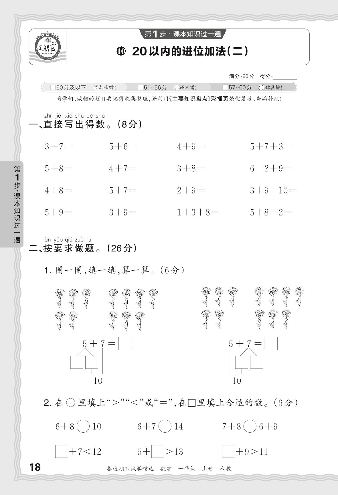 2023秋上册一年级数学人教版 期末过课本JX版·20以内的进位加法(二)【10】