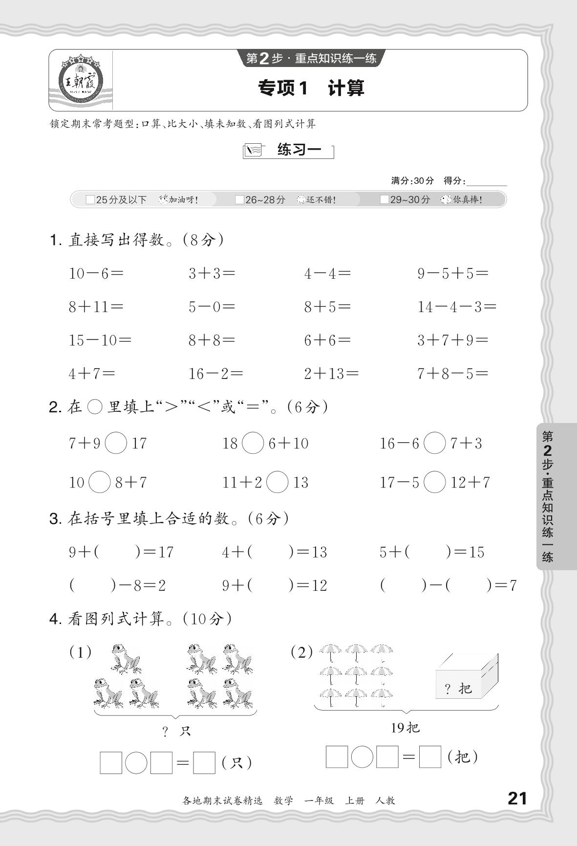 2023秋上册一年级数学人教版 期末专项卷JX版·计算【1】