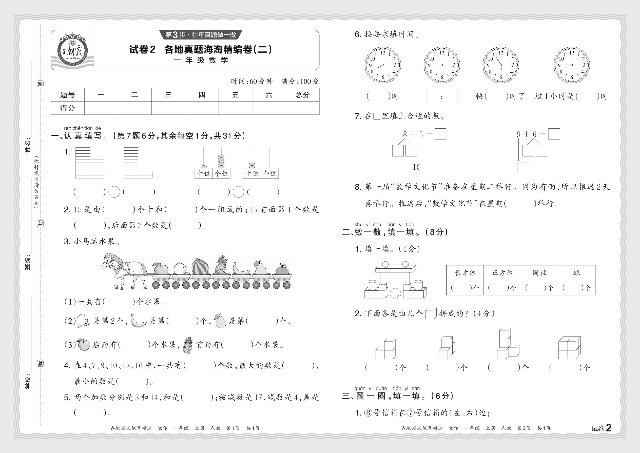 2023秋上册一年级数学人教版 各地真题海淘精编卷(二)JX