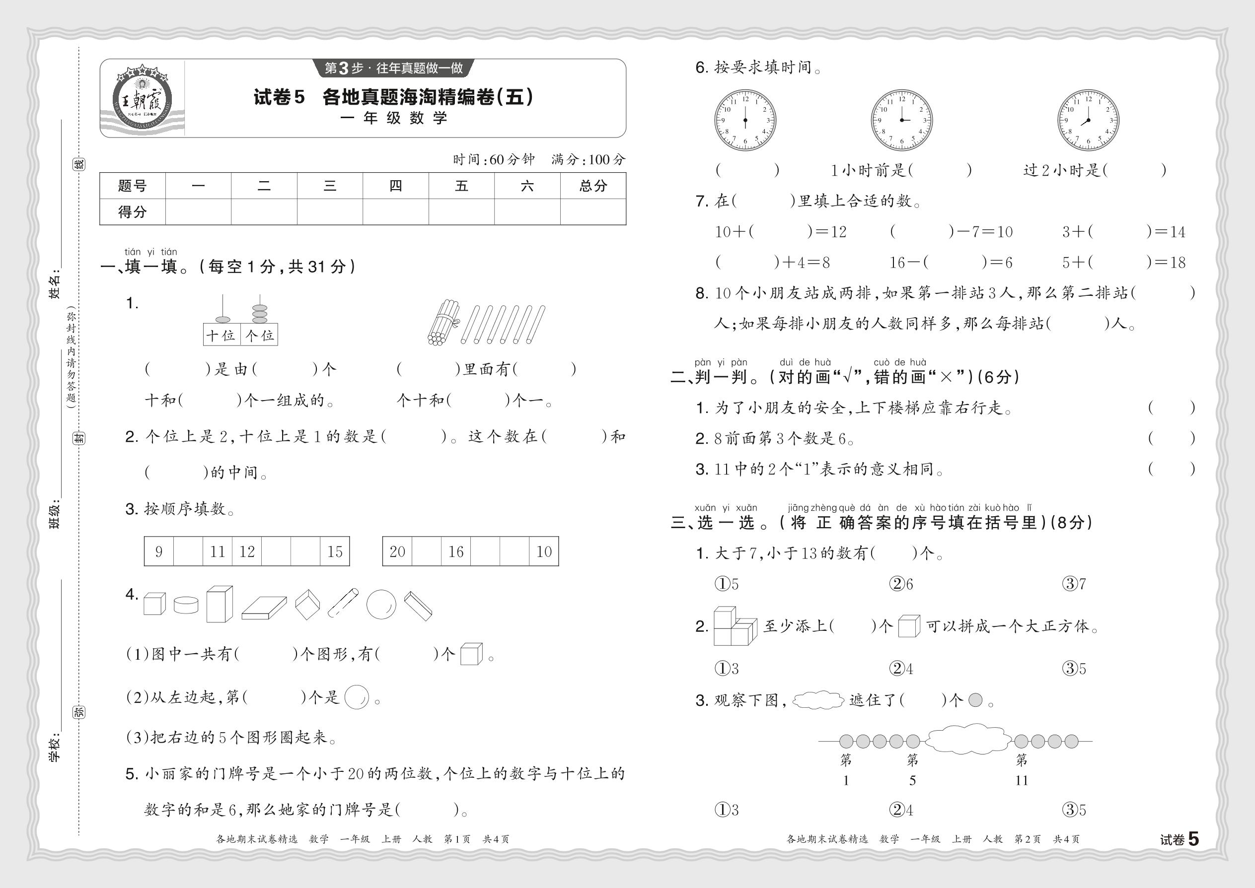 2023秋上册一年级数学人教版 各地真题海淘精编卷(五)JX