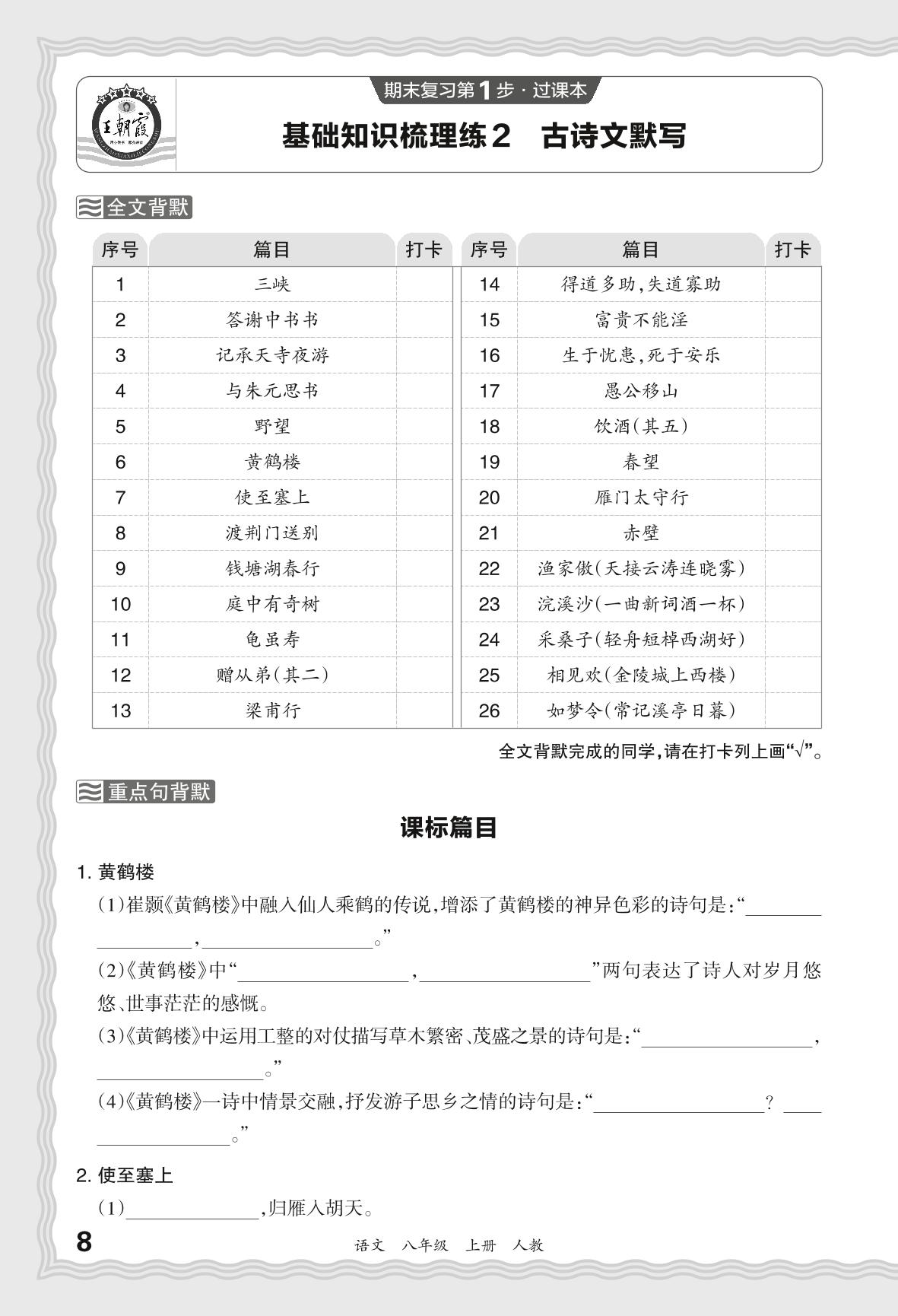 2023秋上册八年级语文人教版 期末过课本·基础知识梳理 古诗文默写【2】