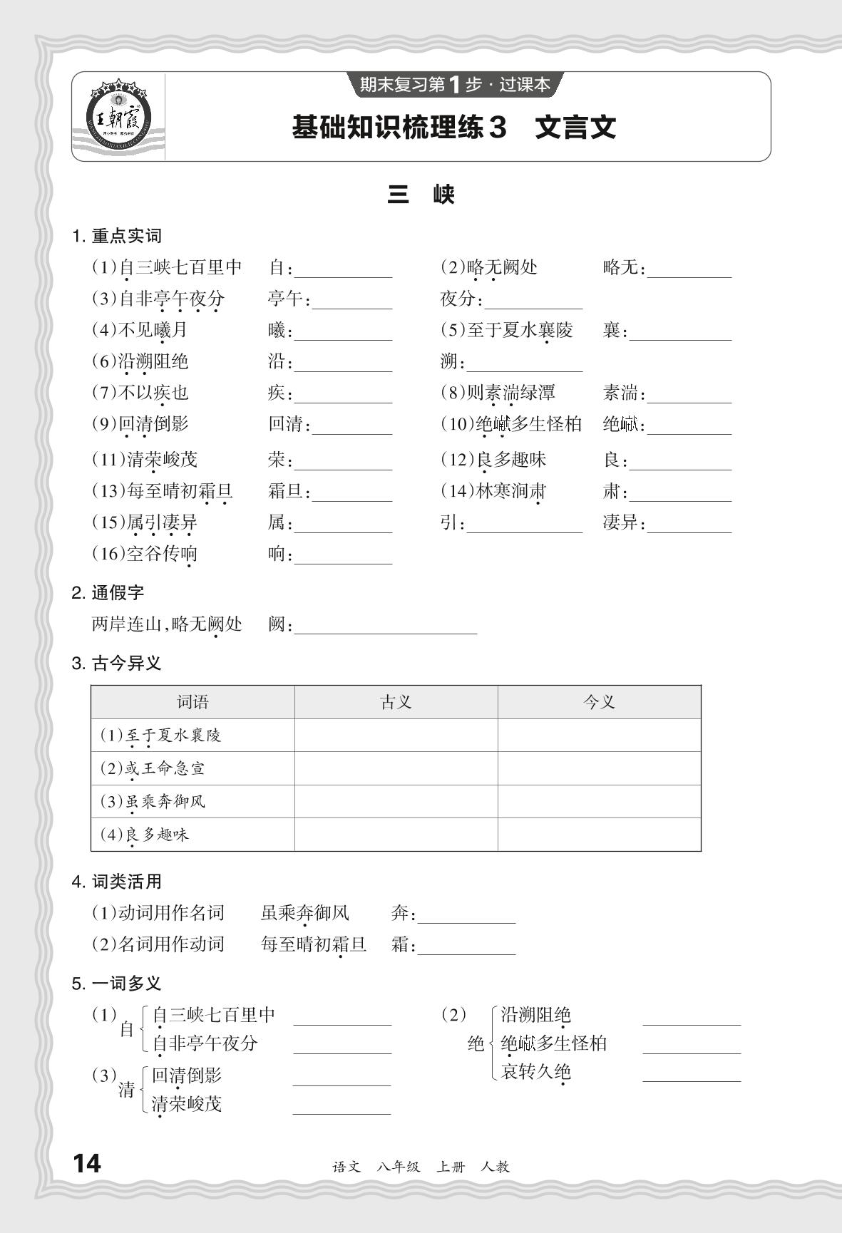 2023秋上册八年级语文人教版 期末过课本·基础知识梳理 文言文【3】