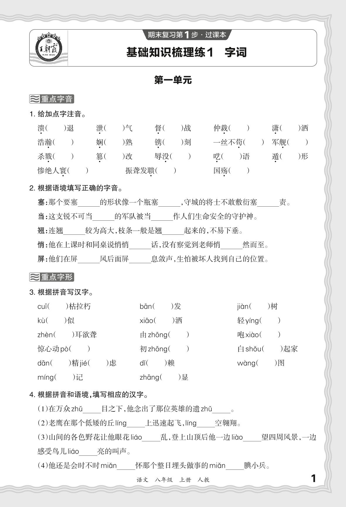 2023秋上册八年级语文人教版 期末过课本·基础知识梳理 字词【1】