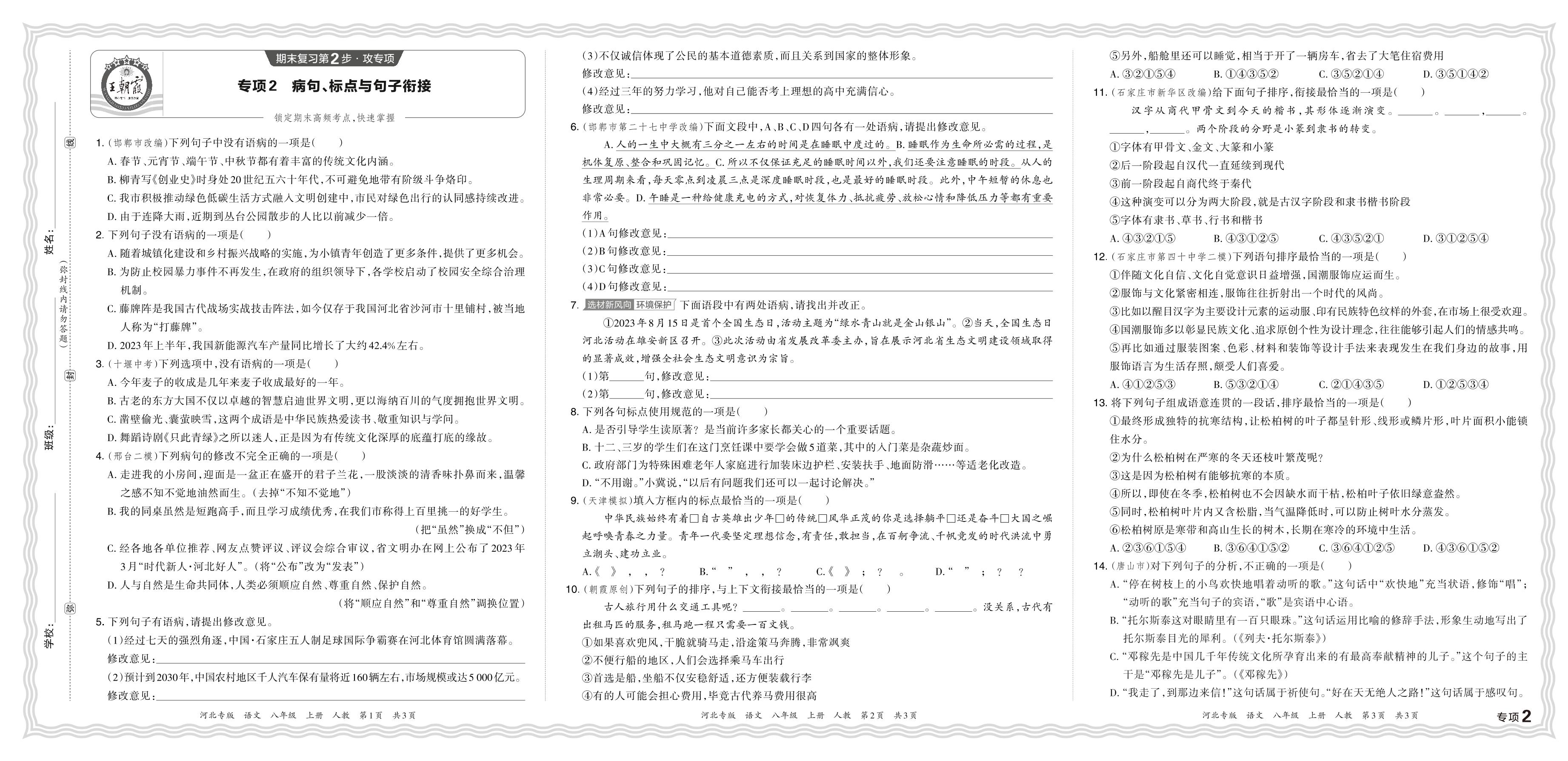 2023秋上册八年级语文人教版 期末专项卷·病句、标点与句子衔接【2】