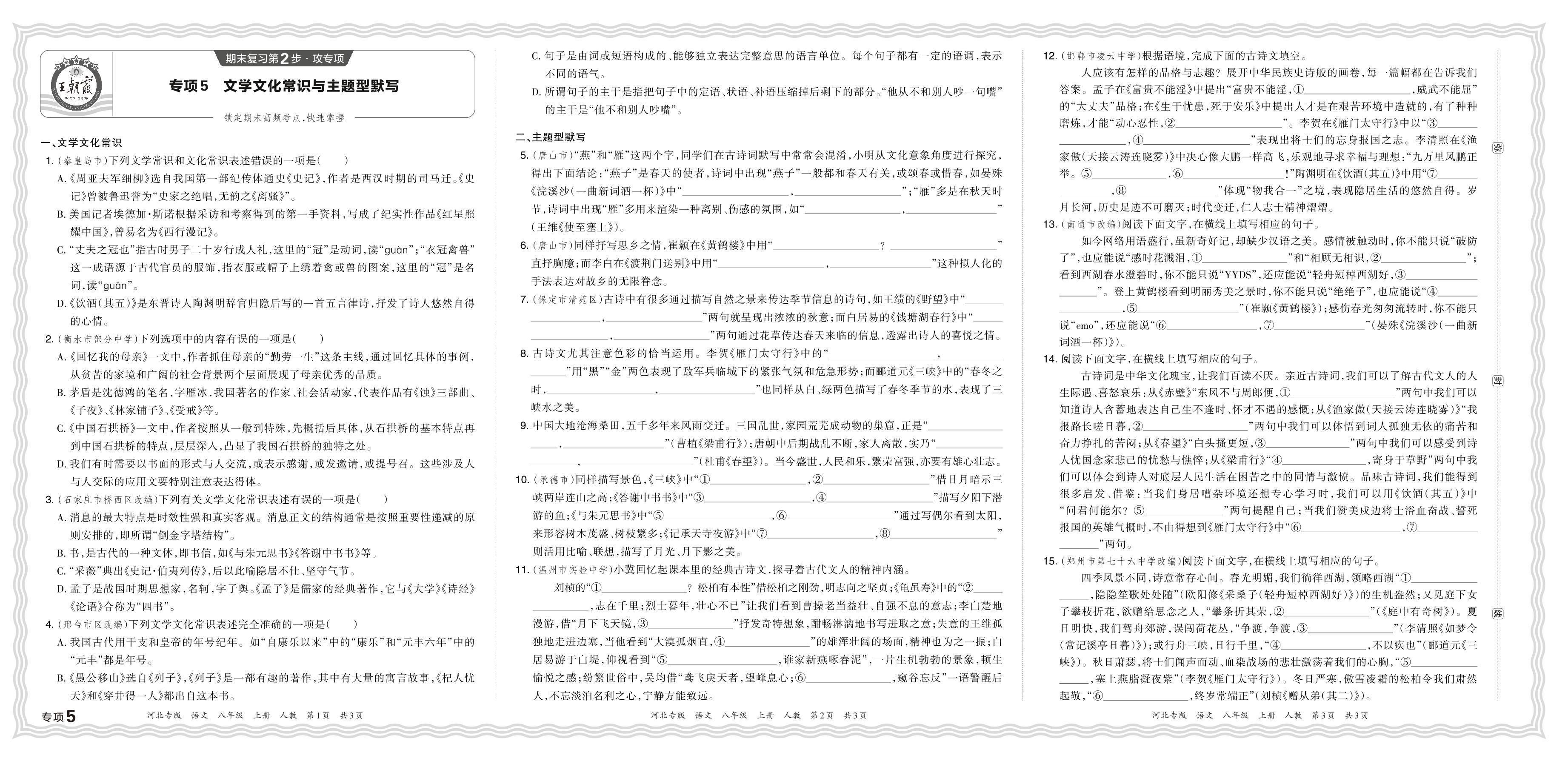 2023秋上册八年级语文人教版 期末专项卷·文学文化常识与主题型默写【5】
