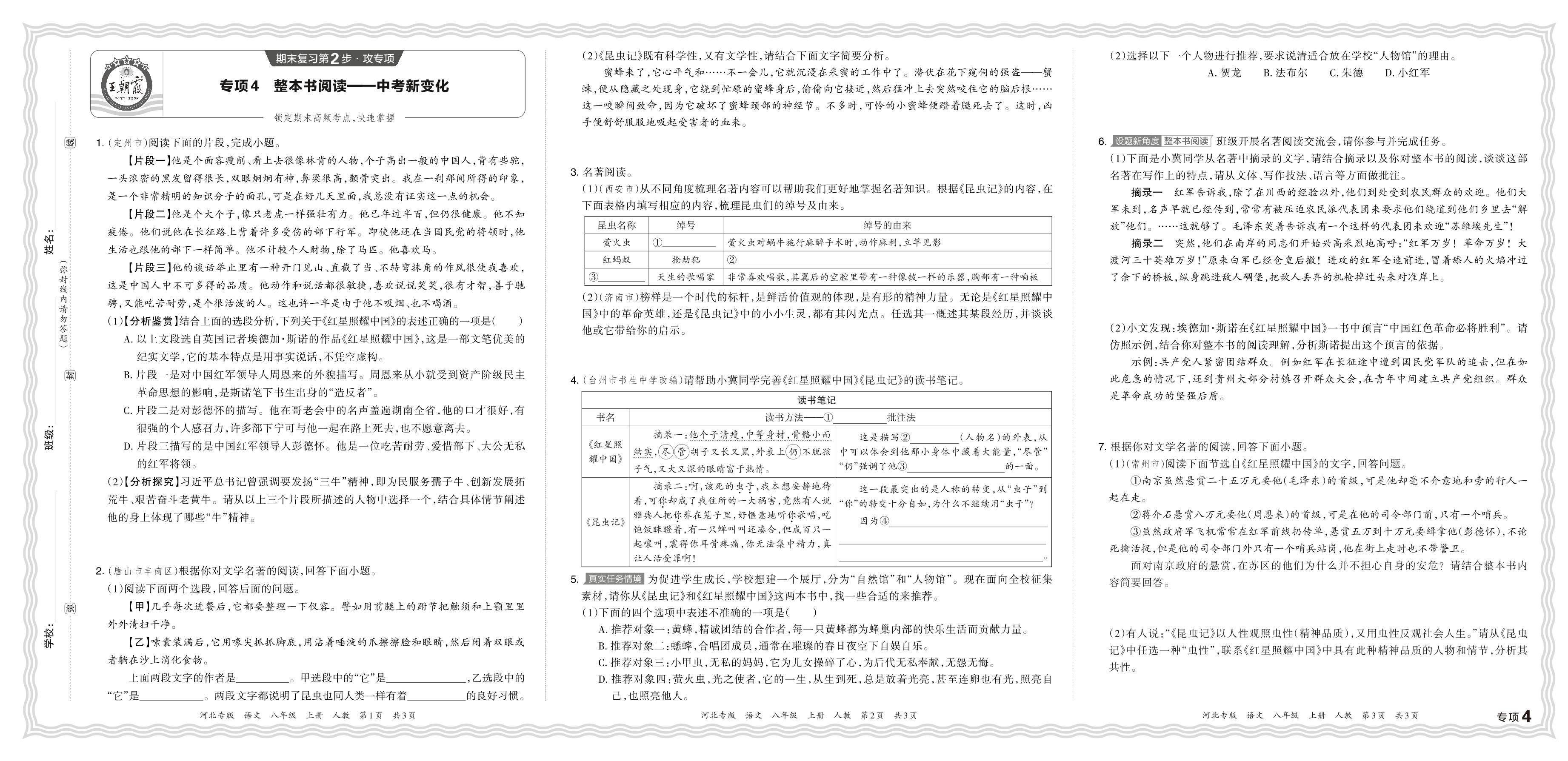 2023秋上册八年级语文人教版 期末专项卷·整本书阅读——中考新变化【4】