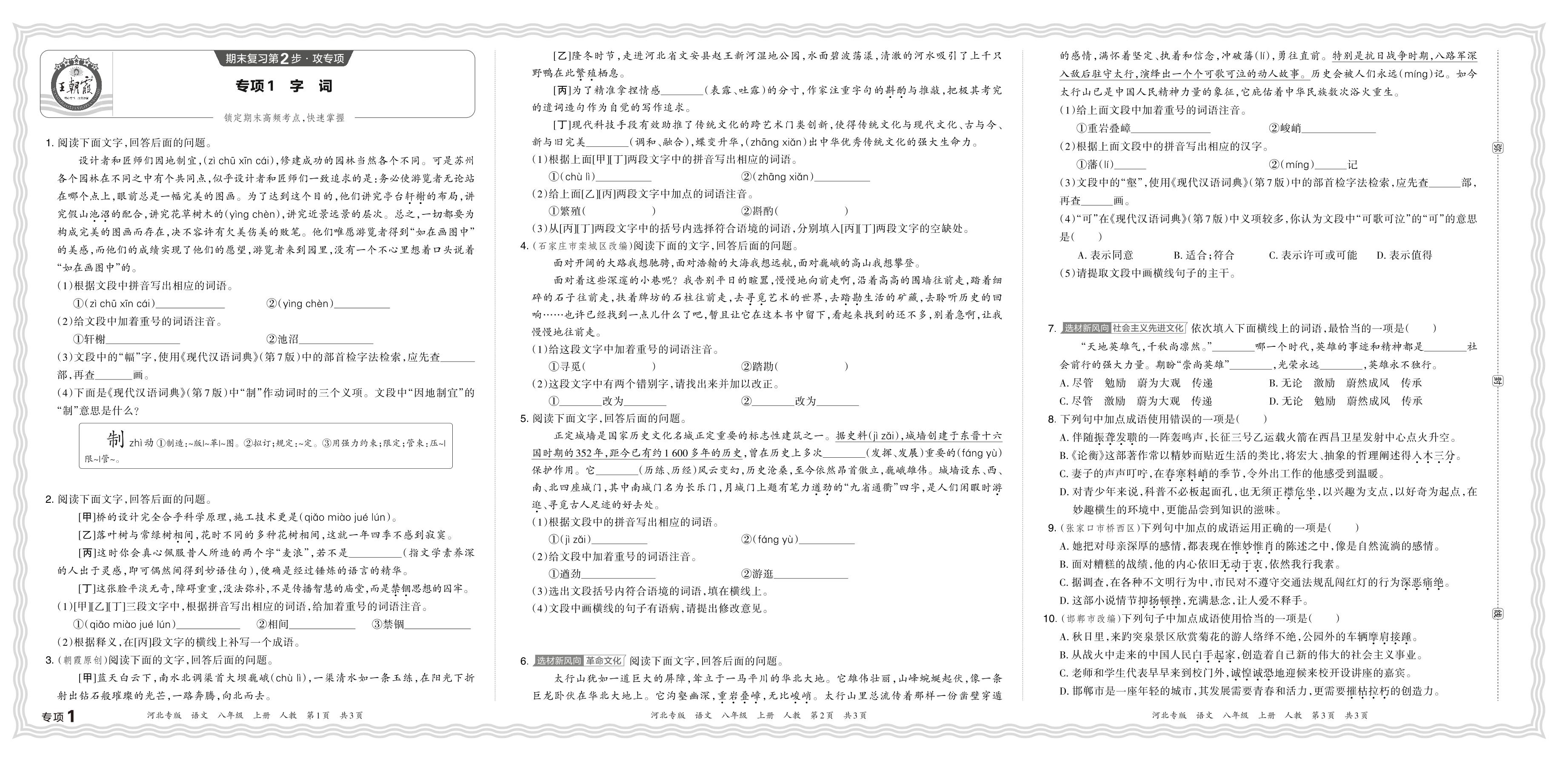 八年级语文人教版上册专项卷