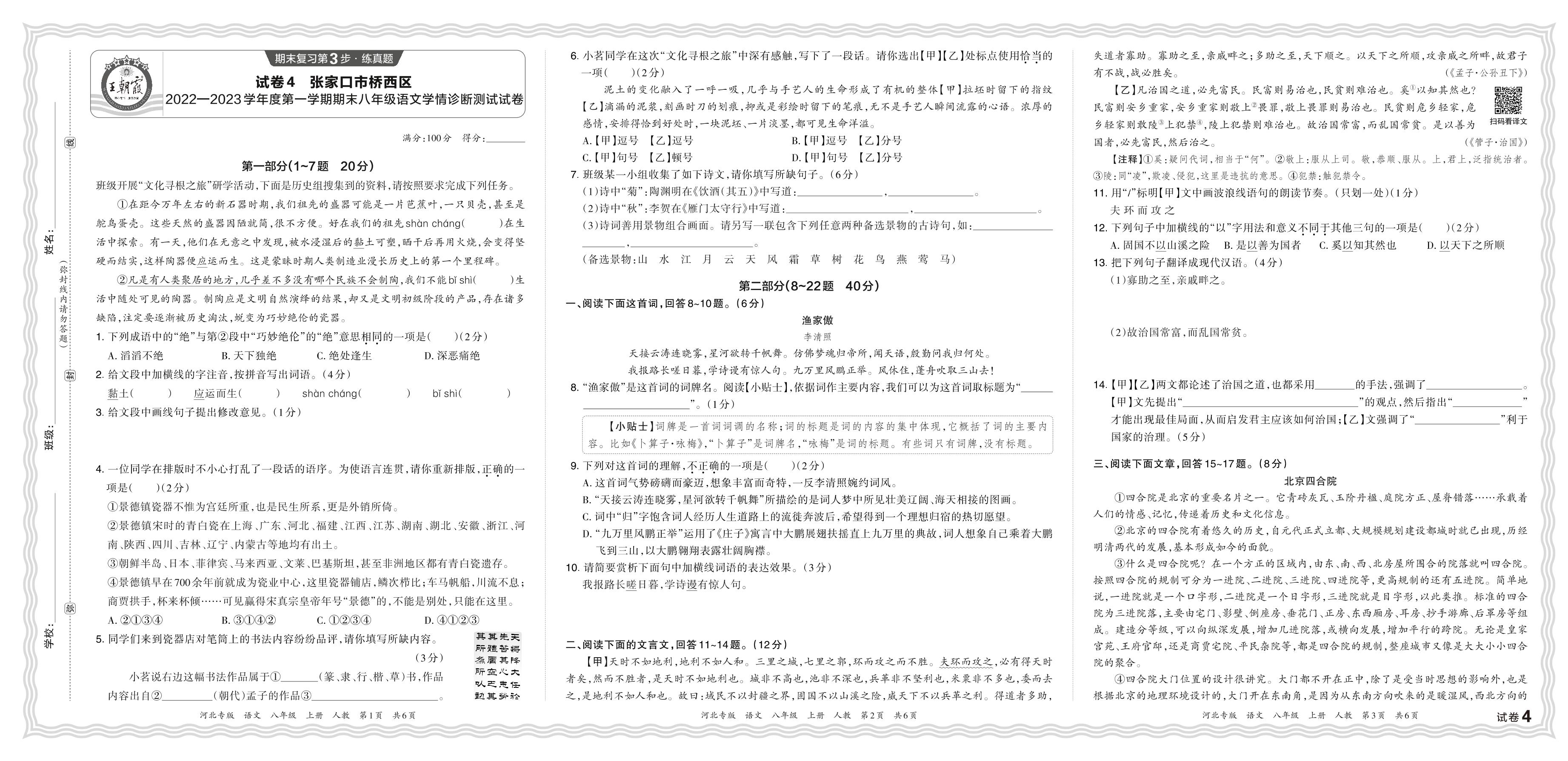 河北省张家口市桥西区2022—2023学年度第一学期期末八年级语文学情诊断测试试卷(人教版)【4】