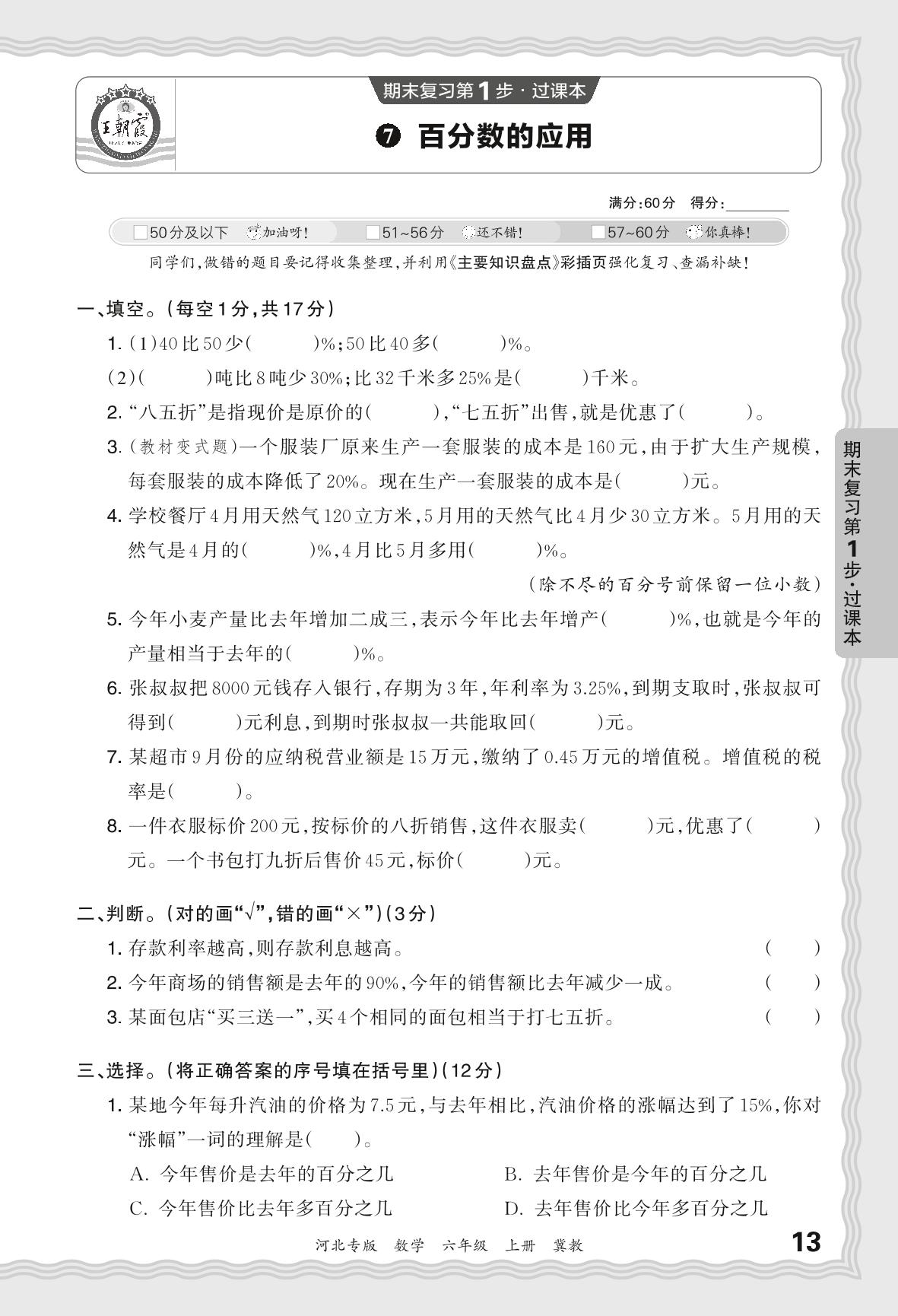 2023秋上册六年级数学冀教版 期末过课本·百分数的应用【7】