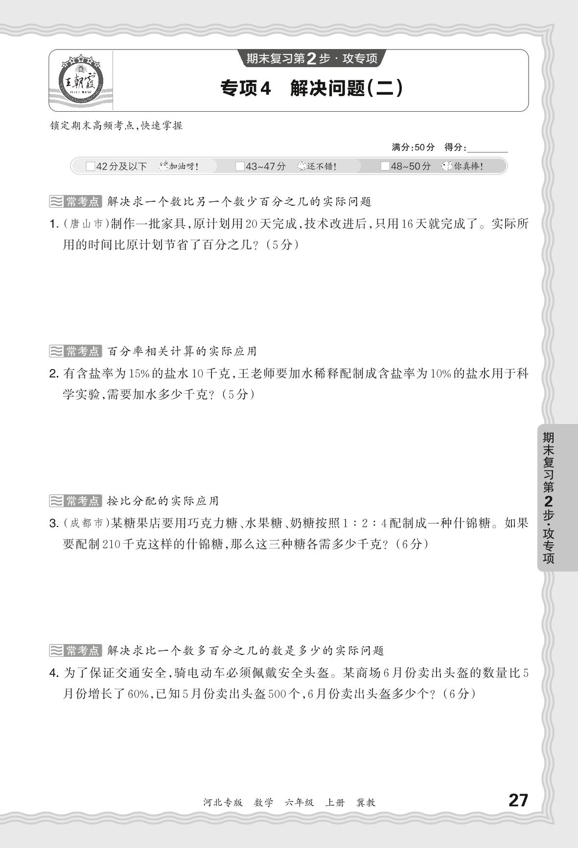 2023秋上册六年级数学冀教版 期末专项·解决问题(二)【4】