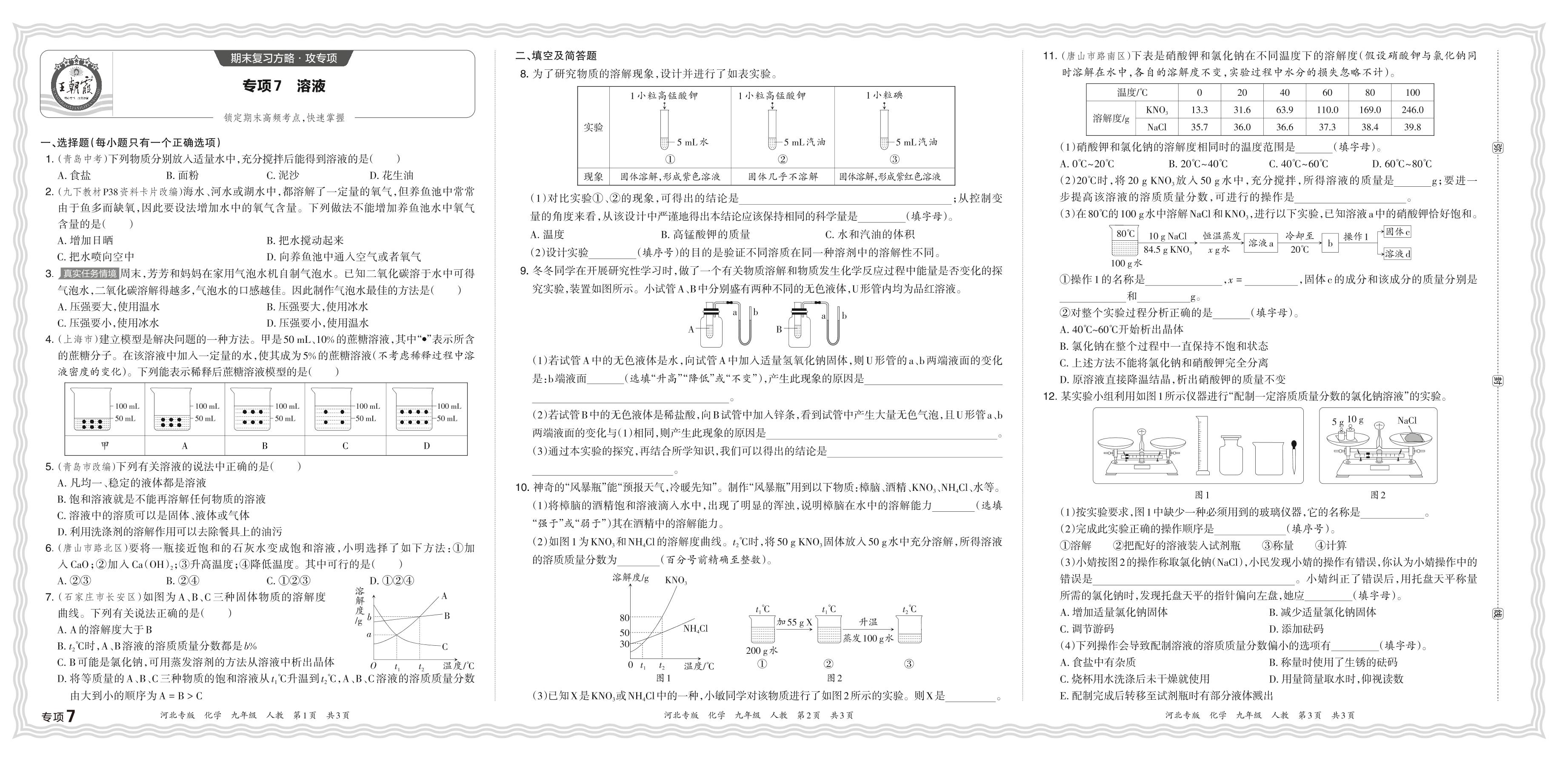 2023秋上册九年级化学人教版 期末专项卷·溶液【7】