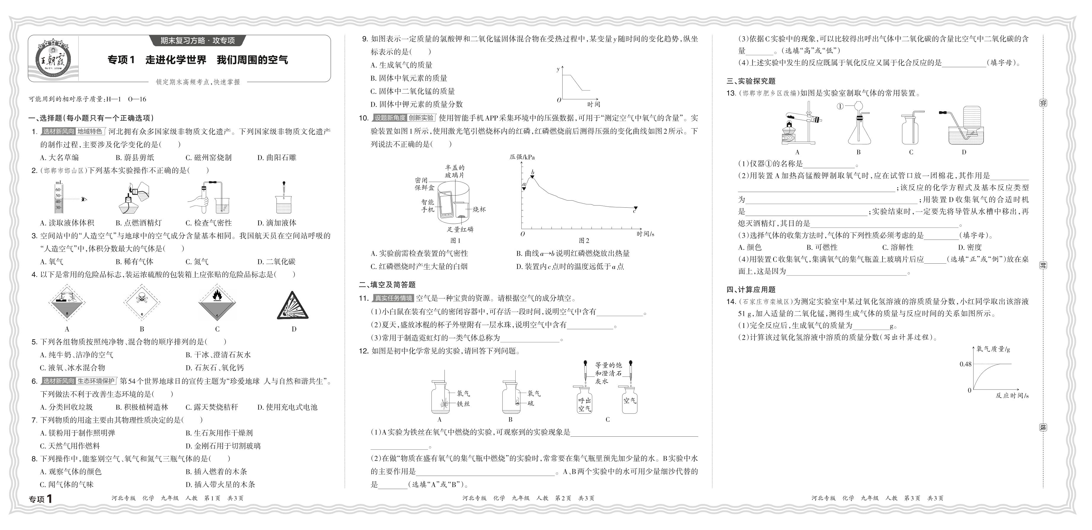 2023秋上册九年级化学人教版 期末专项卷·走进化学世界 我们周围的空气【1】