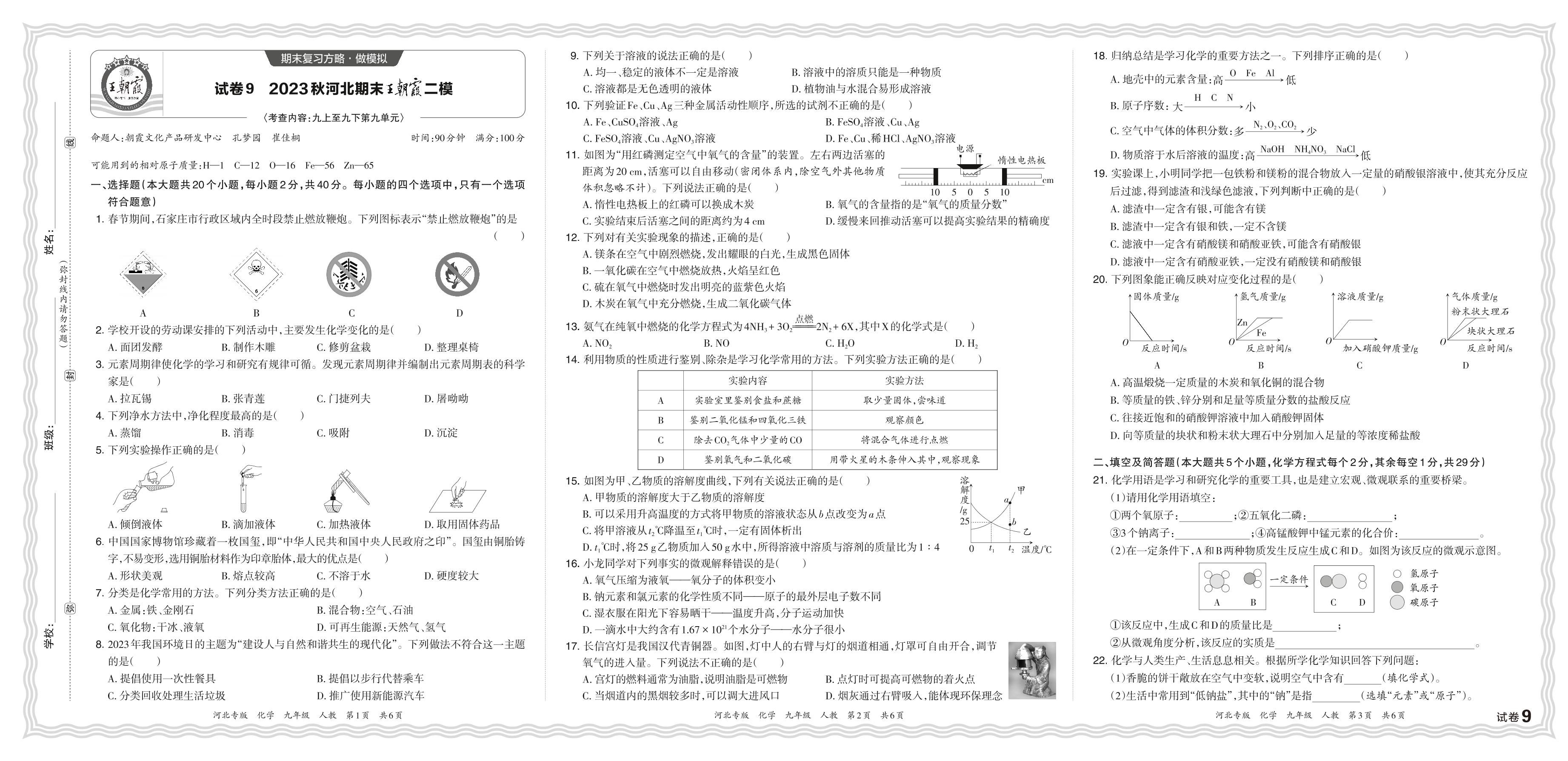 2023秋上册九年级化学人教版 河北期末王朝霞二模