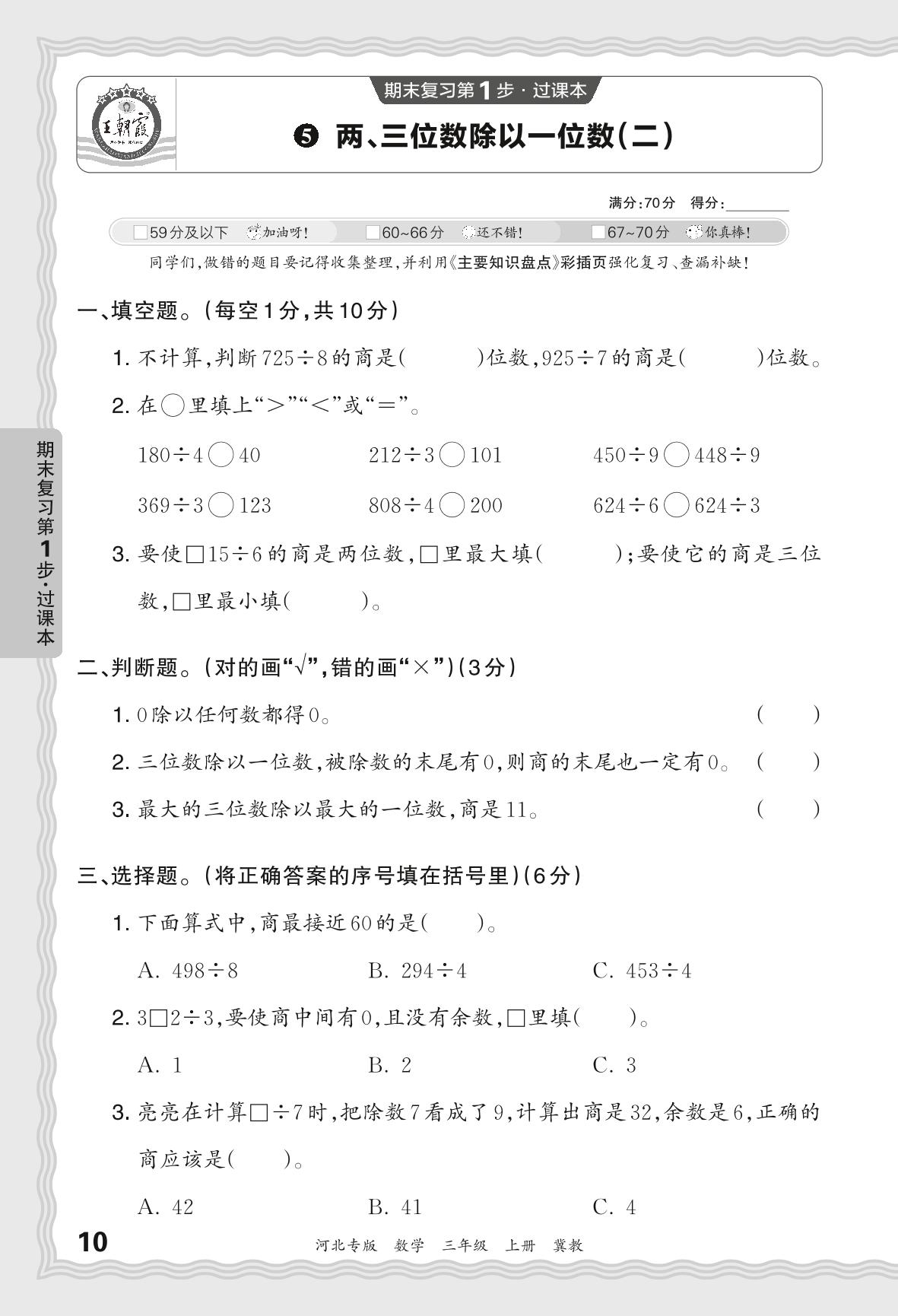 2023秋上册三年级数学冀教版 期末过课本·两、三位数除以一位数(二)【5】