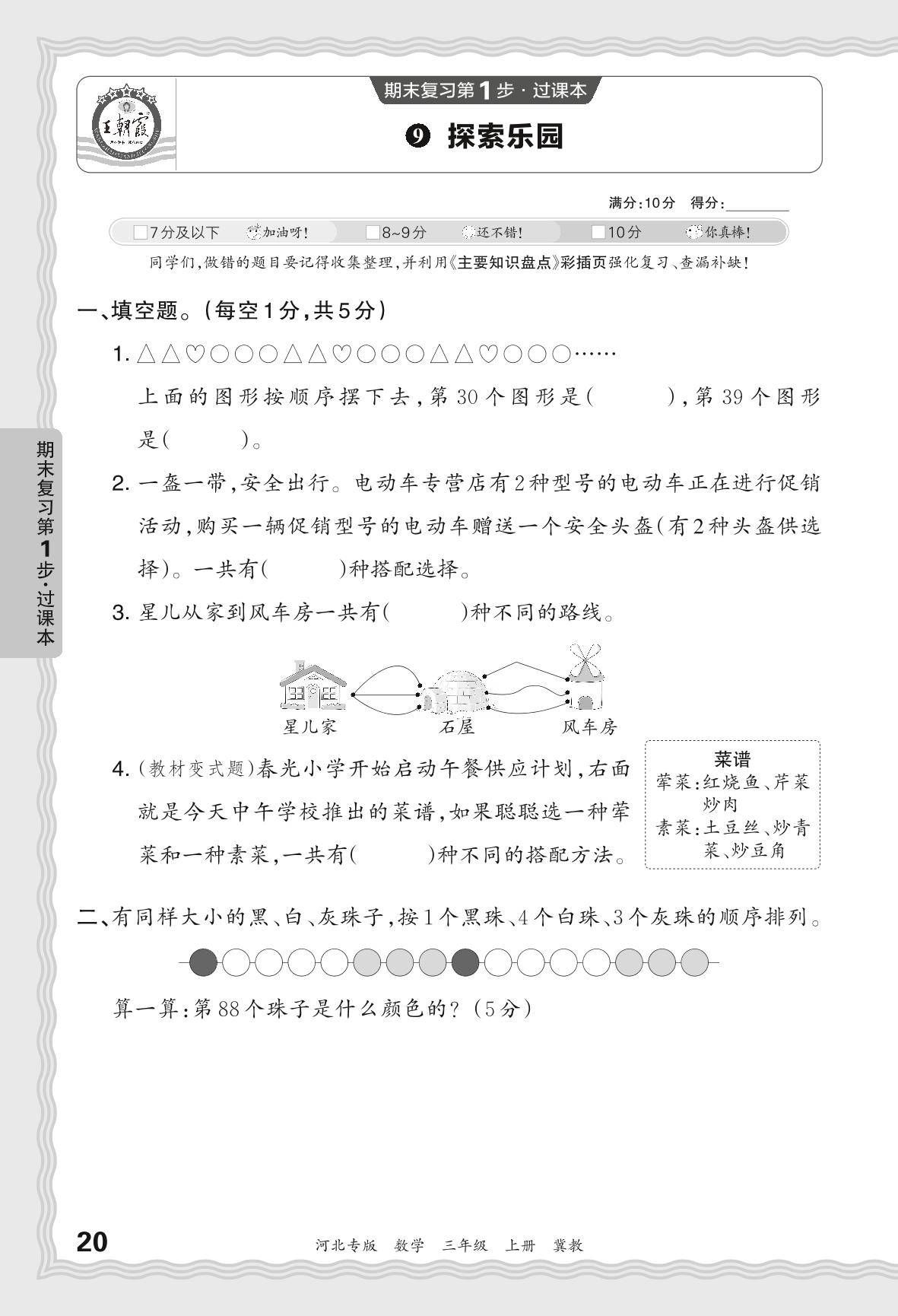 2023秋上册三年级数学冀教版 期末过课本·探索乐园【9】