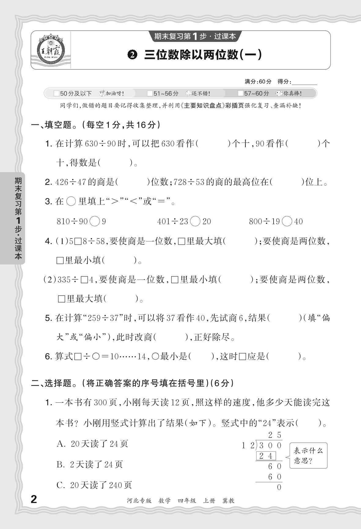 2023秋上册四年级数学冀教版 期末过课本·三位数除以两位数(一)【2】
