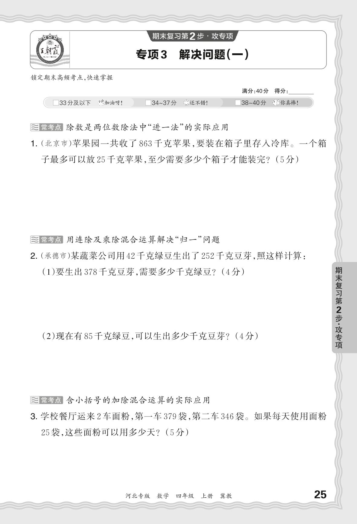 2023秋上册四年级数学冀教版 期末专项·解决问题(一)【3】