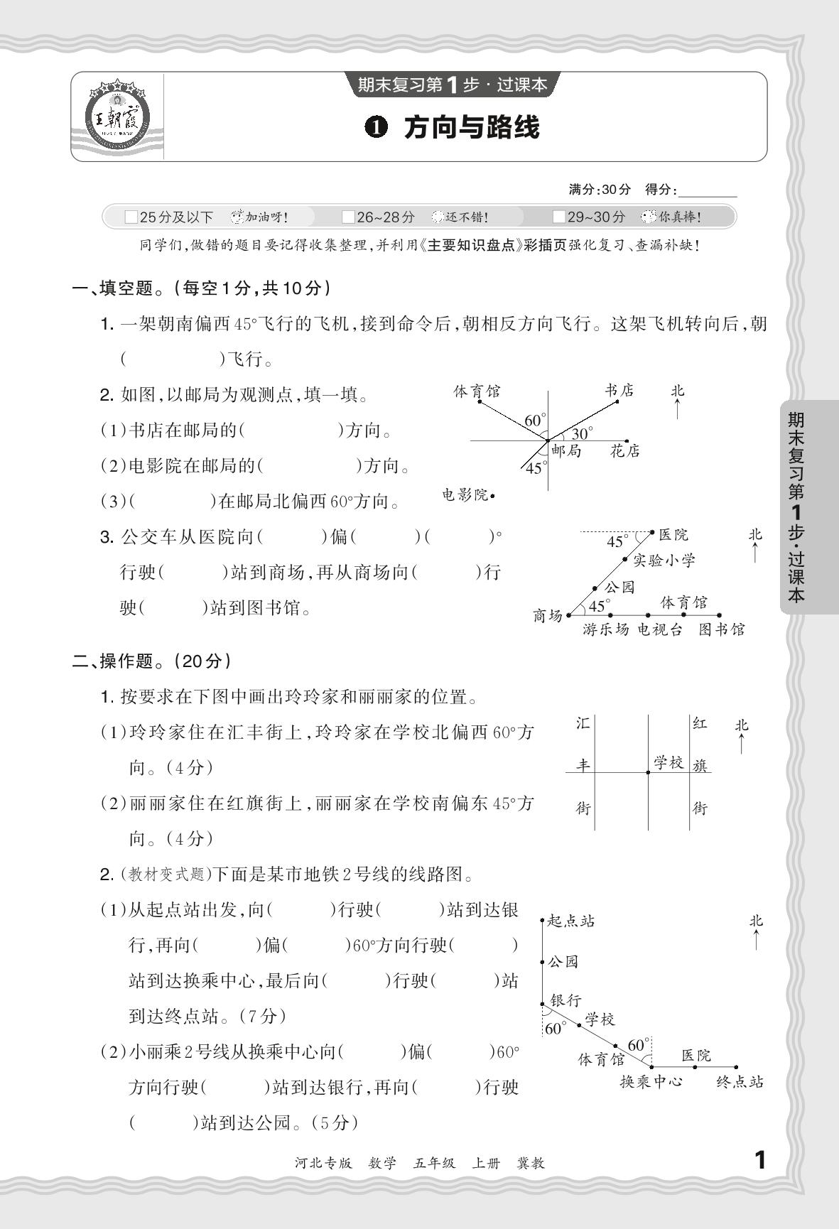 2023秋上册五年级数学冀教版 期末过课本·方向与路线【1】