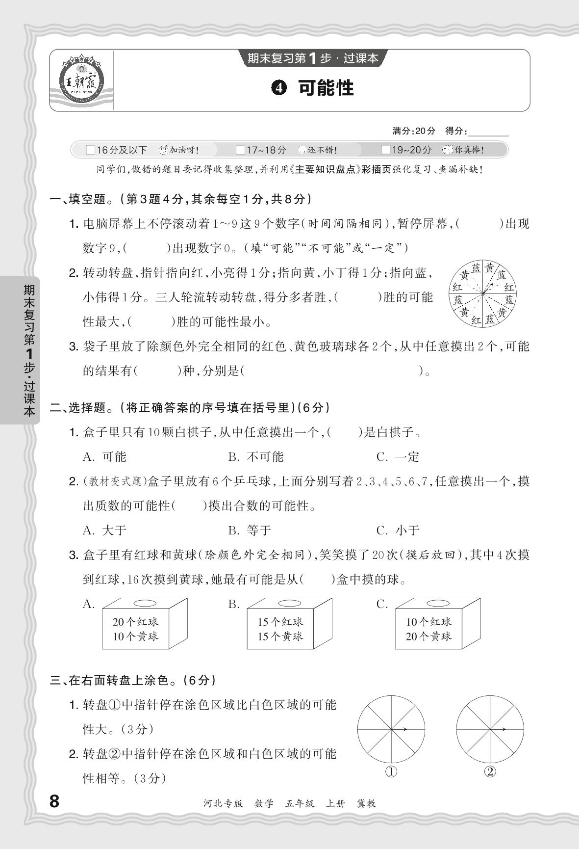 2023秋上册五年级数学冀教版 期末过课本·可能性【4】
