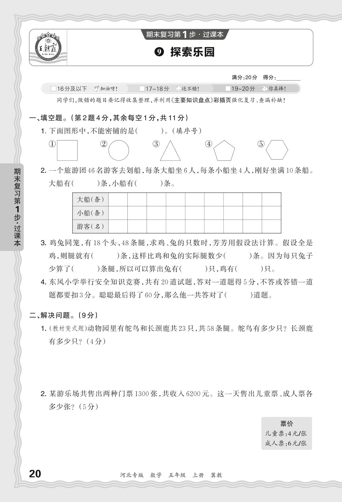 2023秋上册五年级数学冀教版 期末过课本·探索乐园【9】