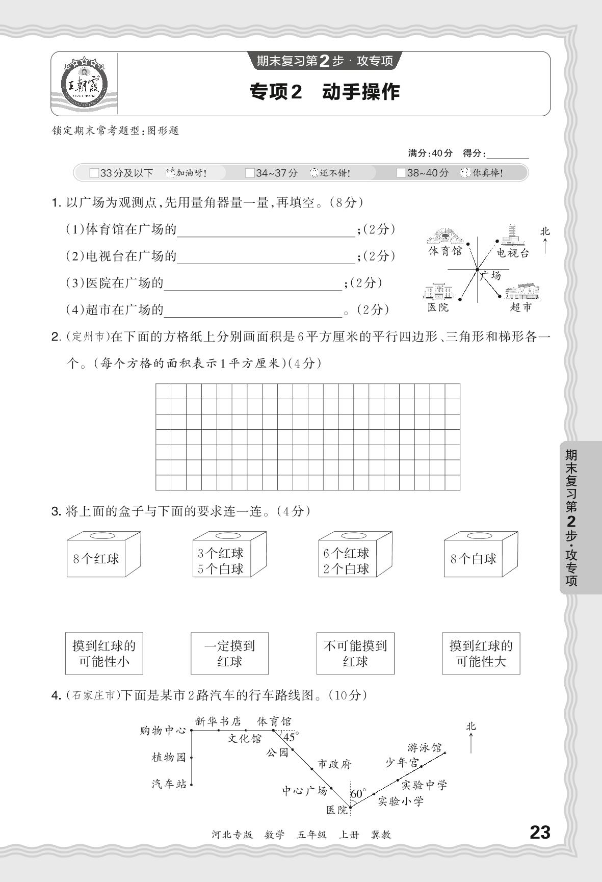 2023秋上册五年级数学冀教版 期末专项·动手操作【2】