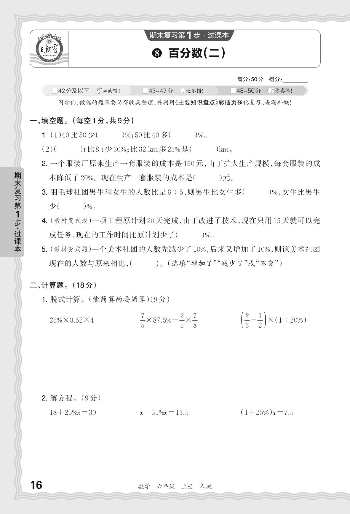 2023秋上册六年级数学人教版 期末过课本QMA版·百分数(二)【8】