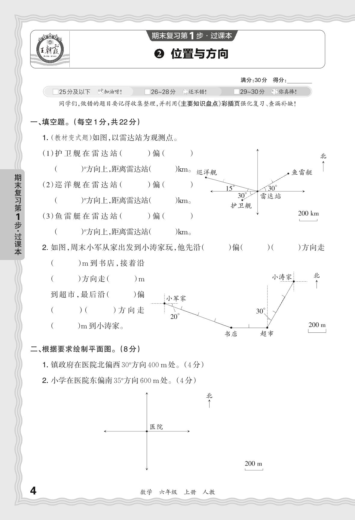 2023秋上册六年级数学人教版 期末过课本QMA版·位置与方向【2】