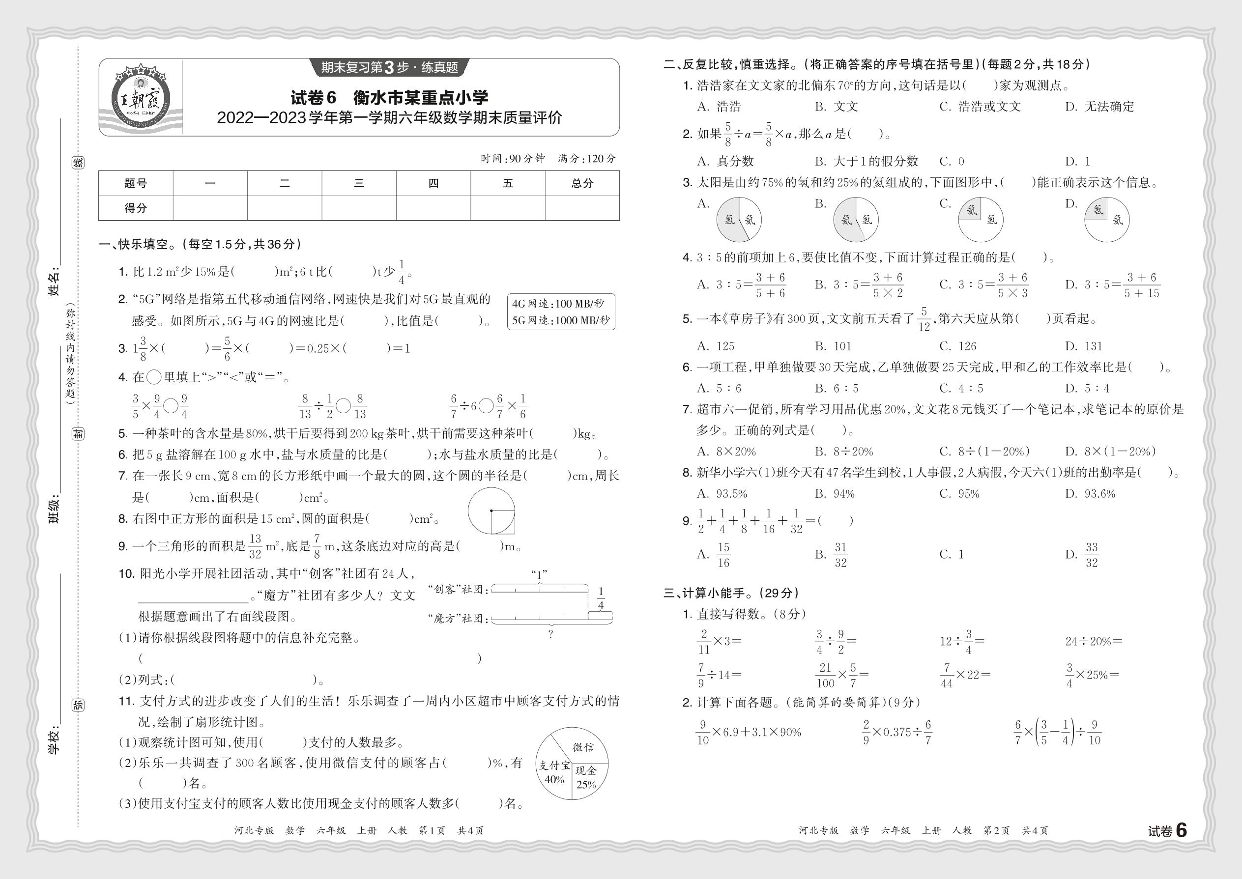 河北省衡水市某重点小学2022—2023学年第一学期六年级数学期末质量评价(人教版)【6】