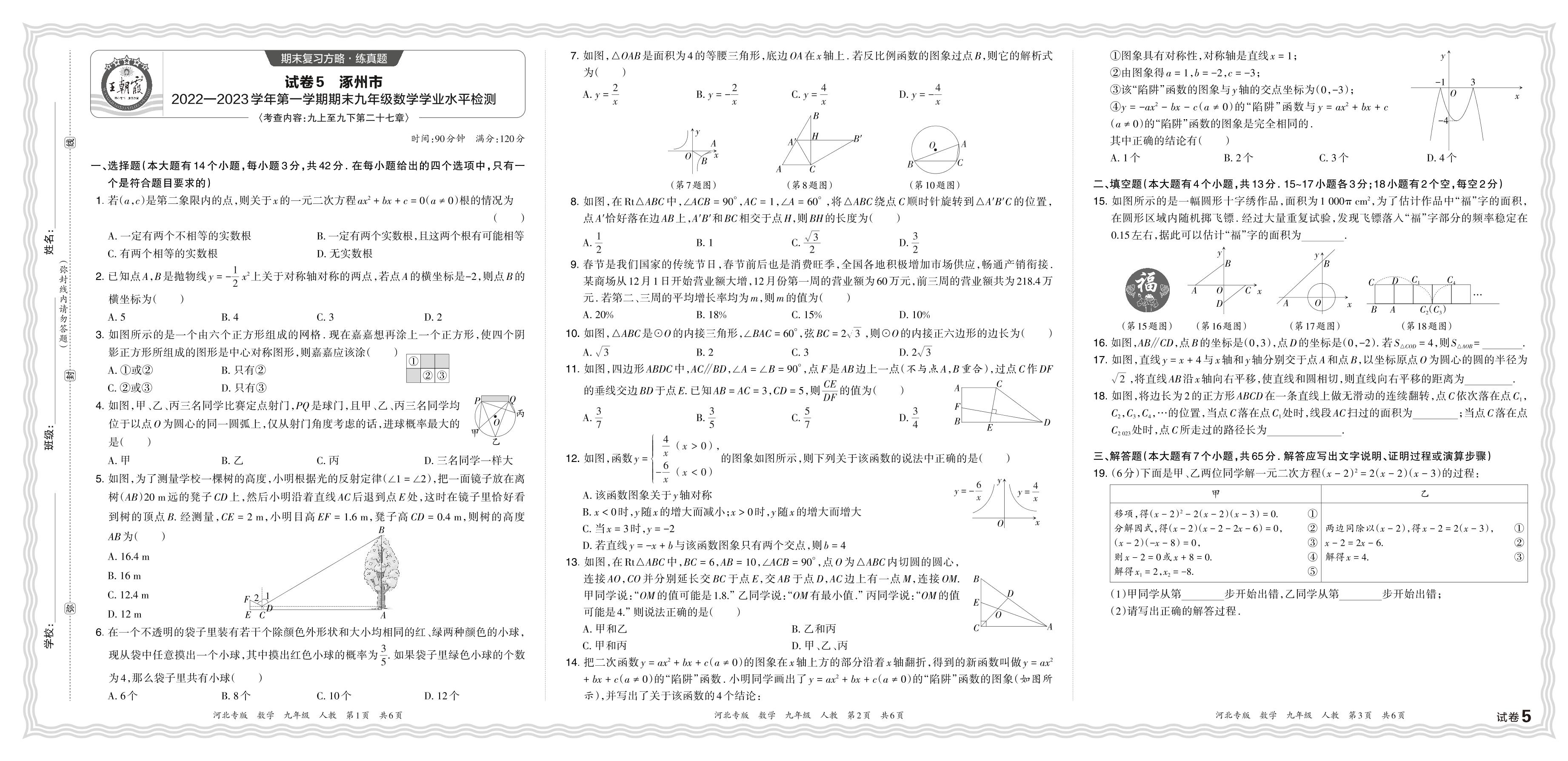 河北省保定市涿州市2022—2023学年第一学期期末九年级数学学业水平检测(人教版)【5】