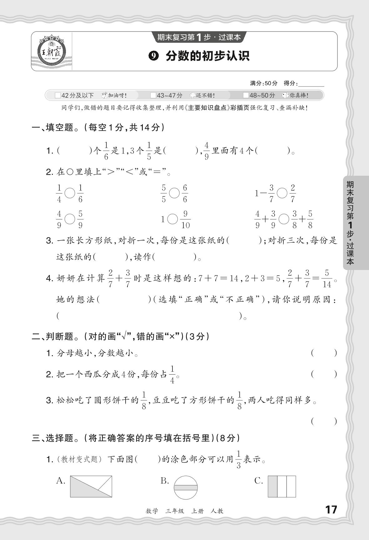 2023秋上册三年级数学人教版 期末过课本QMA版·分数的初步认识【9】