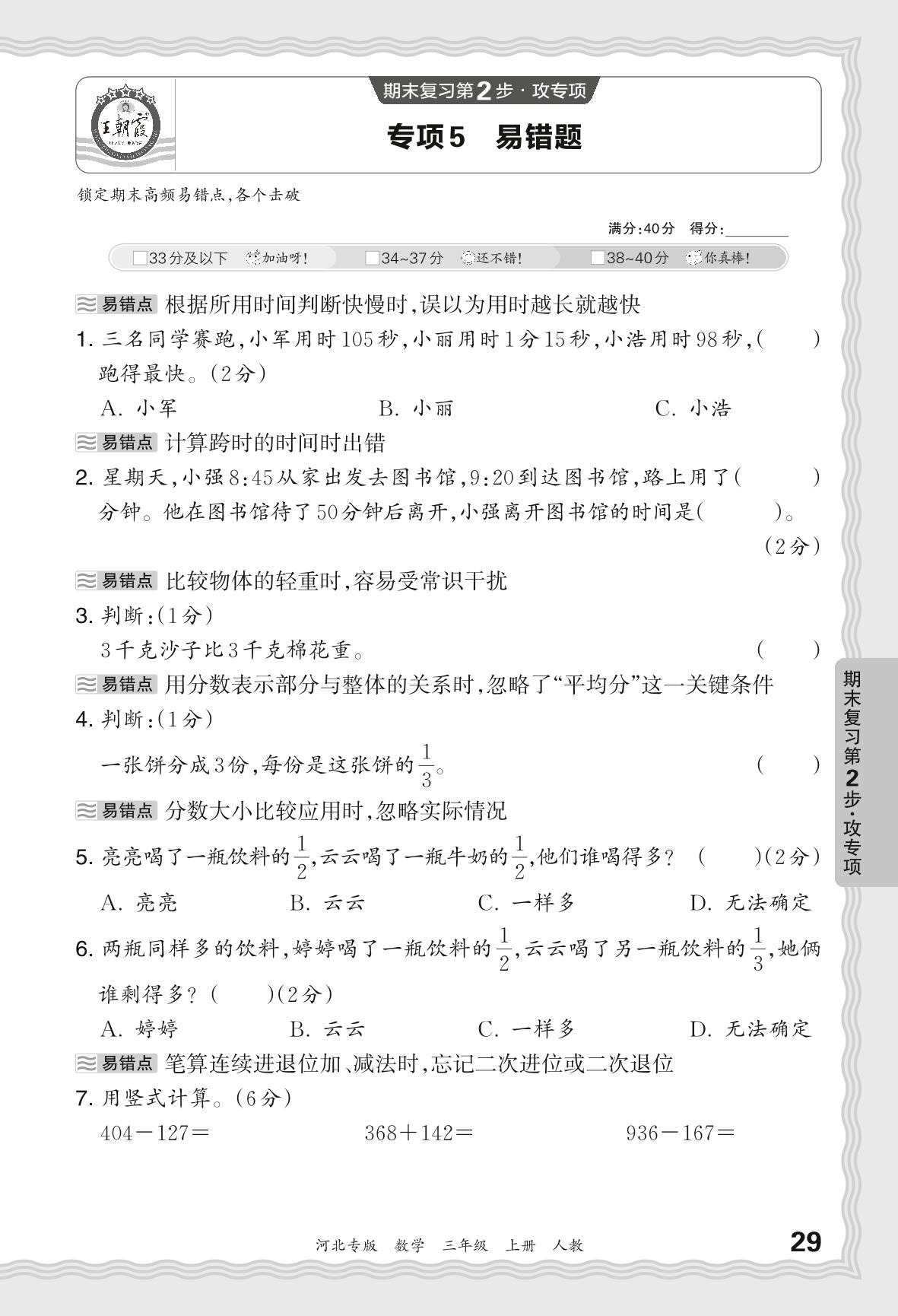 2023秋上册三年级数学人教版 期末专项·易错题【5】