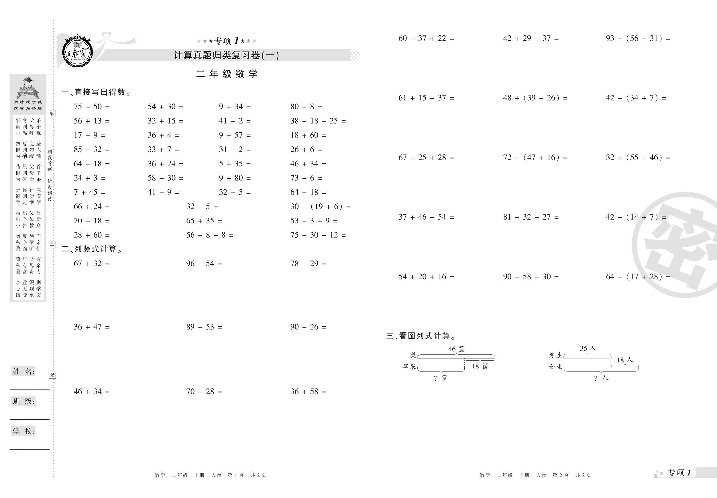 王朝霞期末专项卷——计算(一)(二)真题归类复习卷二年级上册数学(人教版)_R210803104438【0】