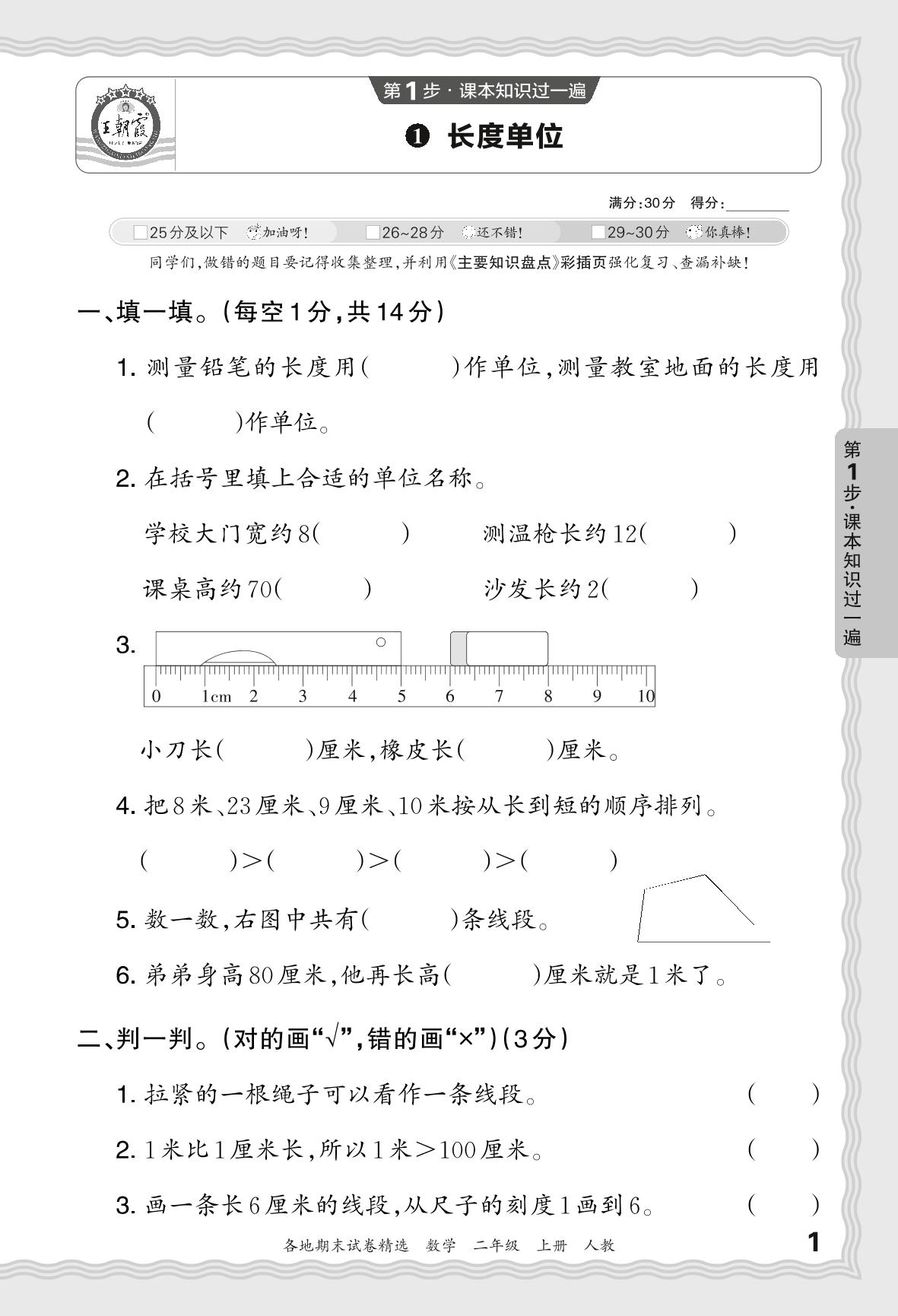 2023秋上册二年级数学人教版 期末过课本JX版·长度单位【1】