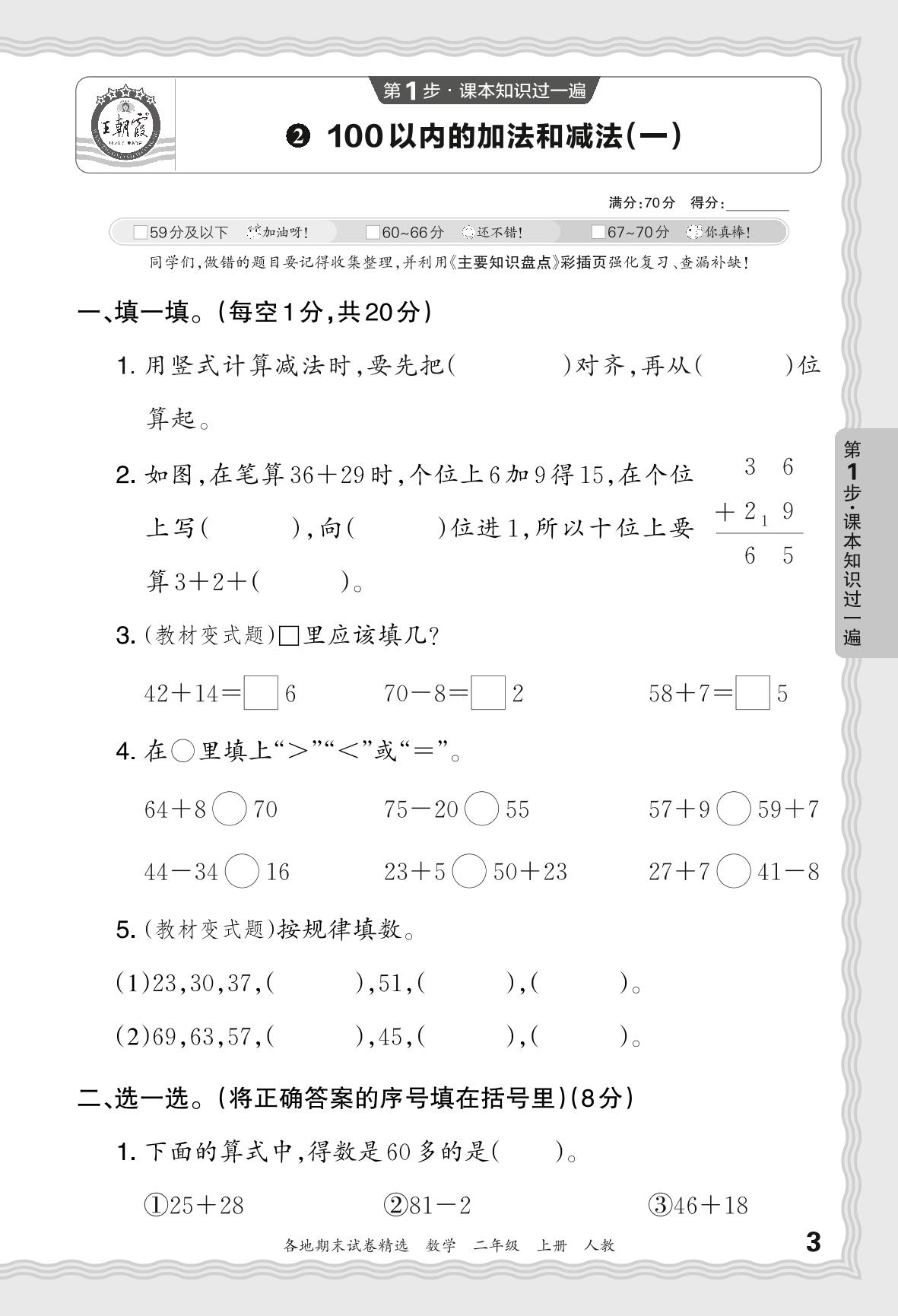 2023秋上册二年级数学人教版 期末过课本JX版·100以内的加法和减法(一)【2】