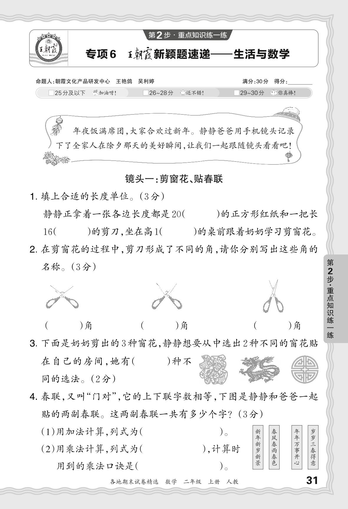 2023秋上册二年级数学人教版 期末专项卷JX版·王朝霞新颖题速递——生活愉快数学【6】