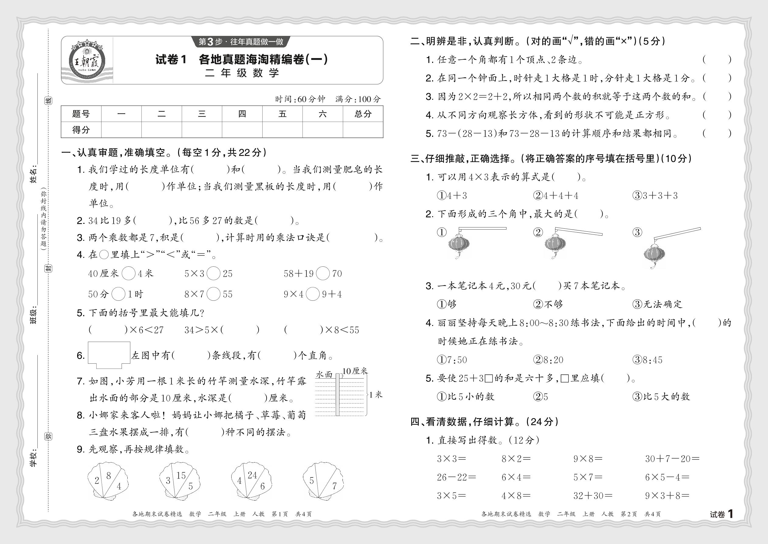 2023秋上册二年级数学人教版 各地真题海淘精编卷(一)JX