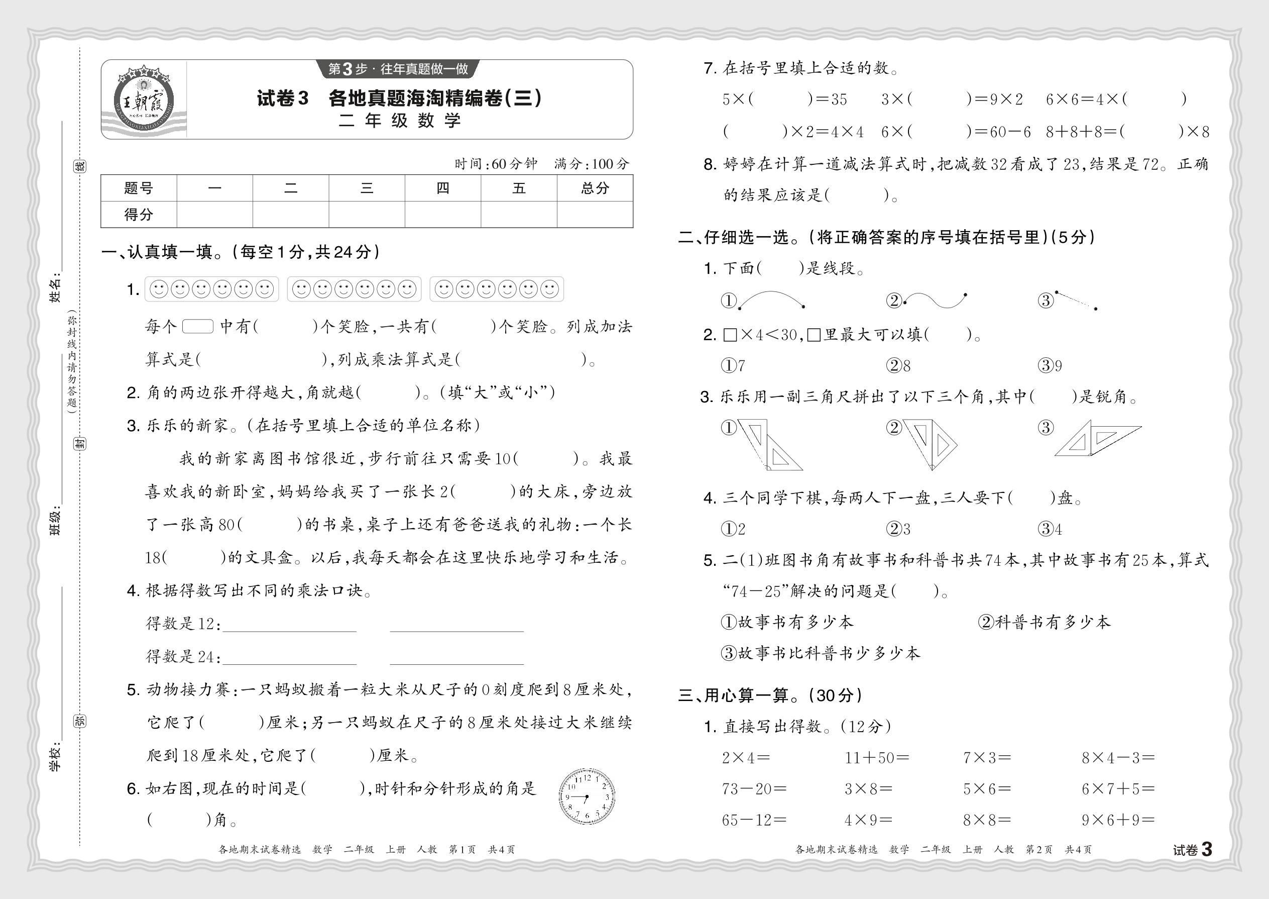 2023秋上册二年级数学人教版 各地真题海淘精编卷(三)JX