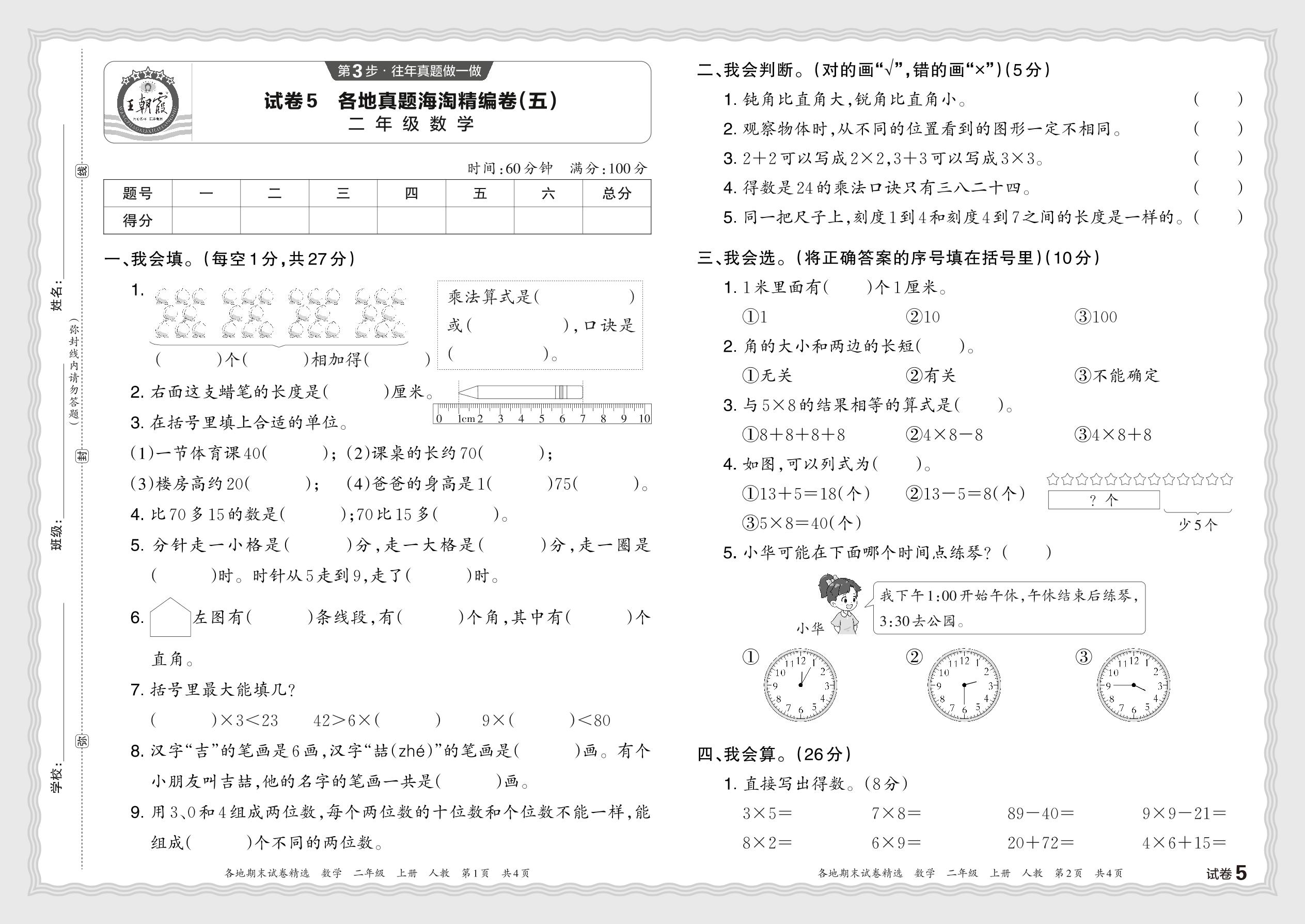 2023秋上册二年级数学人教版 各地真题海淘精编卷(五)JX
