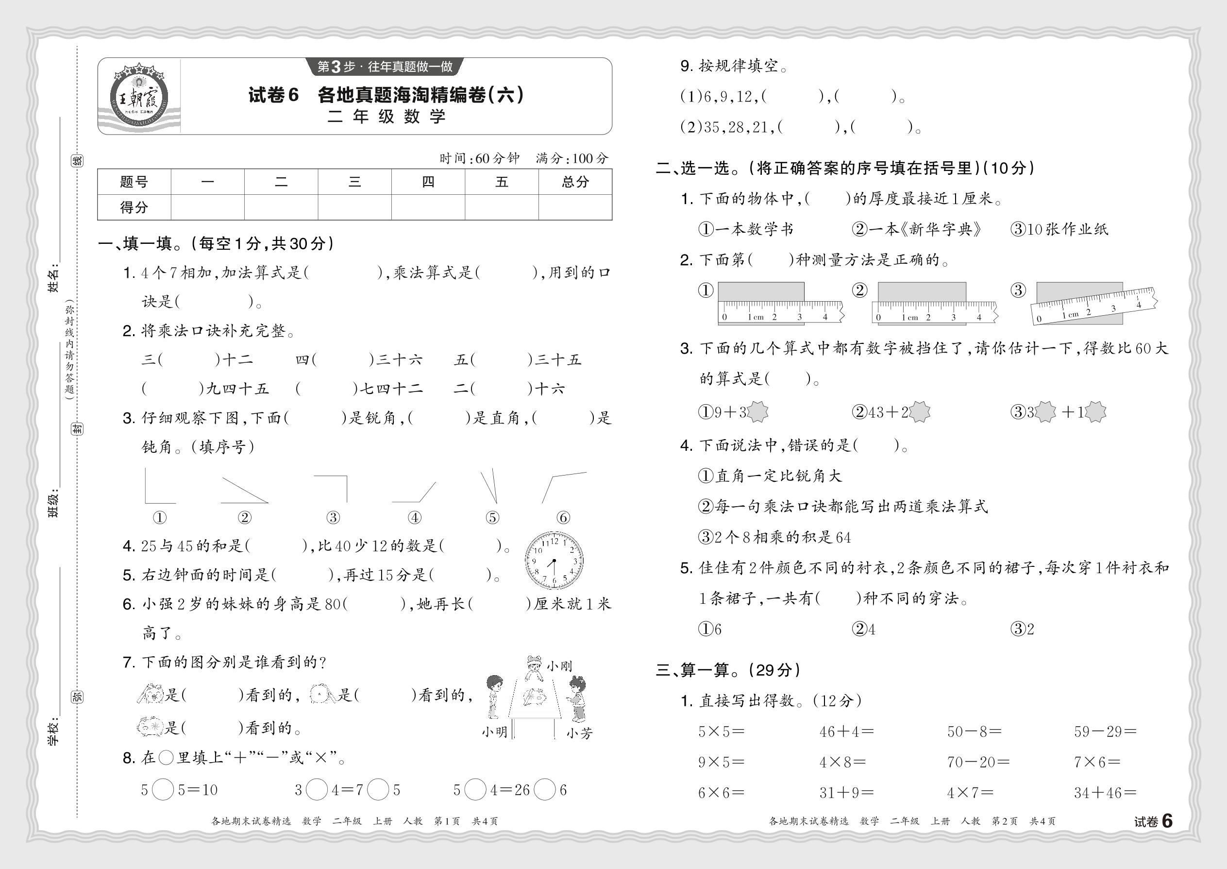 2023秋上册二年级数学人教版 各地真题海淘精编卷(六)JX